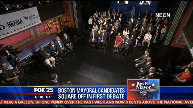 BOSTON (MyFoxBoston.com) – Twelve candidates hoping to fill Boston Mayor Thomas M. Menino's shoes squared off in a debate Monday at Suffolk University.