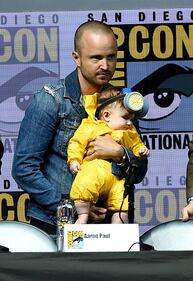 SAN DIEGO, CA - JULY 19: Aaron Paul and Story Annabelle Paul attend the Breaking Bad 10th Anniversary Celebration with AMC during Comic-Con International 2018 at San Diego Convention Center on July 19, 2018 in San Diego, California.