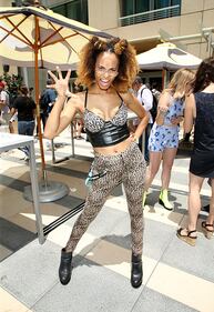 SAN DIEGO, CA - JULY 19: A costumed reveler poses outside San Diego Comic-Con on July 19, 2018 in San Diego, California. Thousands of comic book fans are arriving for the festivities at the annual comic and entertainment convention.
