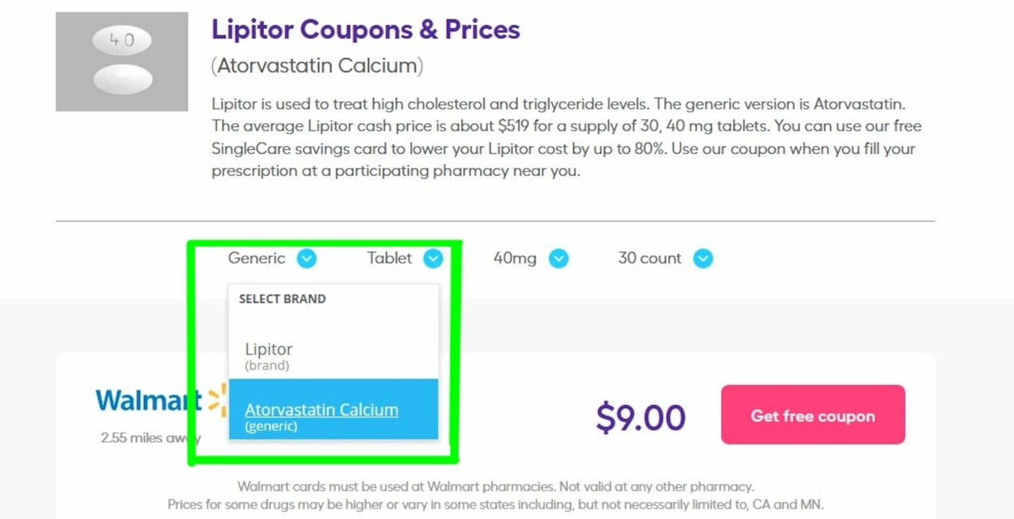 SingleCare works when you’re comparison shopping for either brand name or generic drugs. However, the search tool defaults to show the generic offering.