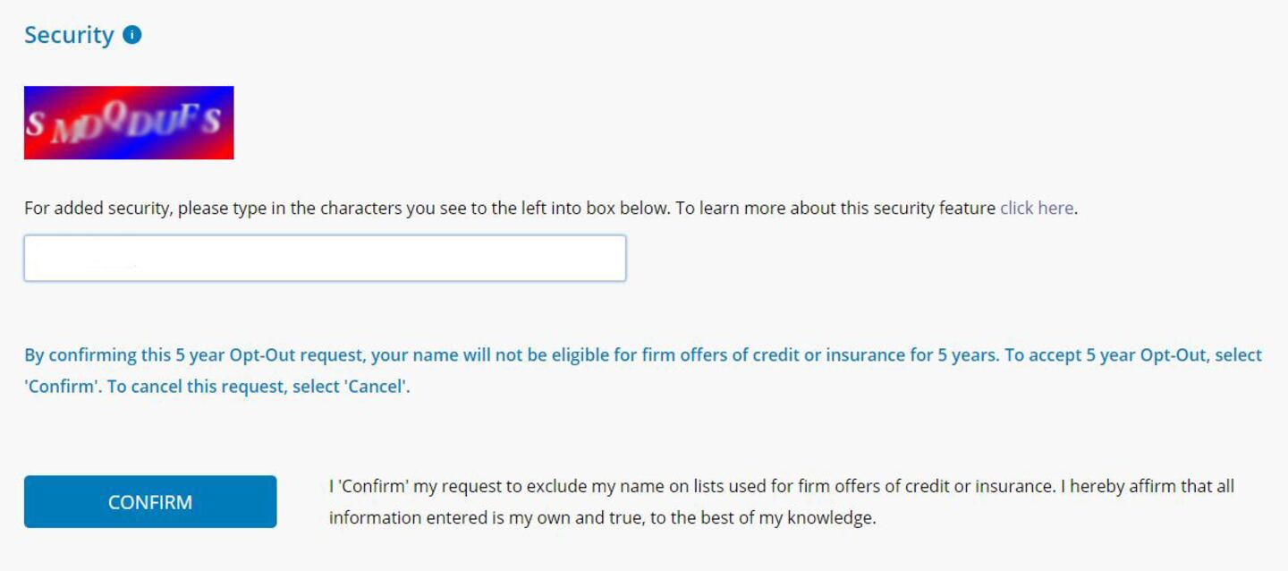 The process to permanently opt-out on OptOutPrescreen.com is exactly the same as above, but you can only begin the process online. To complete it, you must return what’s called a signed Permanent Opt-Out Election Form.