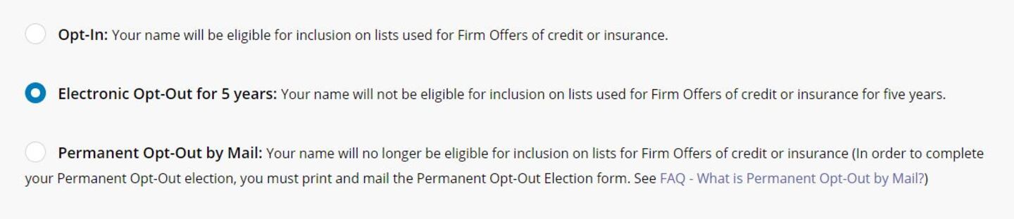 Next you’ll need to select an option: opt-out for five years or opt-out permanently: