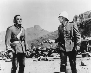 Michael Caine: Stanley Baker, left, and Michael Caine in a publicity portrait issued for the 1964 film, "Zulu." (Silver Screen Collection/Getty Images)