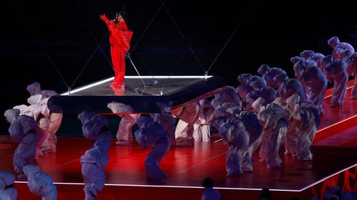 Super Bowl LVII halftime: Rihanna performs at State Farm Stadium during halftime of Super Bowl LVII. (Mike Coppola/Getty Images)