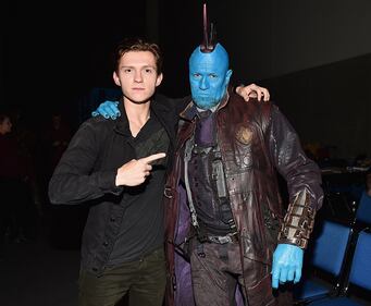 Photos: Tom Holland through the years 2016: Actors Tom Holland from Marvel Studios' "Spider-Man: Homecoming" (left) and Yondu (Michael Rooker) from Marvel Studios' "Guardians of the Galaxy Vol. 2" attend the San Diego Comic-Con International 2016 Marvel Panel in Hall H on July 23, 2016, in San Diego. (Alberto E. Rodriguez/Getty Images for Disney)