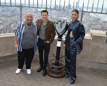 Photos: Tom Holland through the years 2019: Jacob Batalon, Tom Holland and Zendaya light the Empire State Building on June 24, 2019, in New York City. (Theo Wargo/Getty Images)