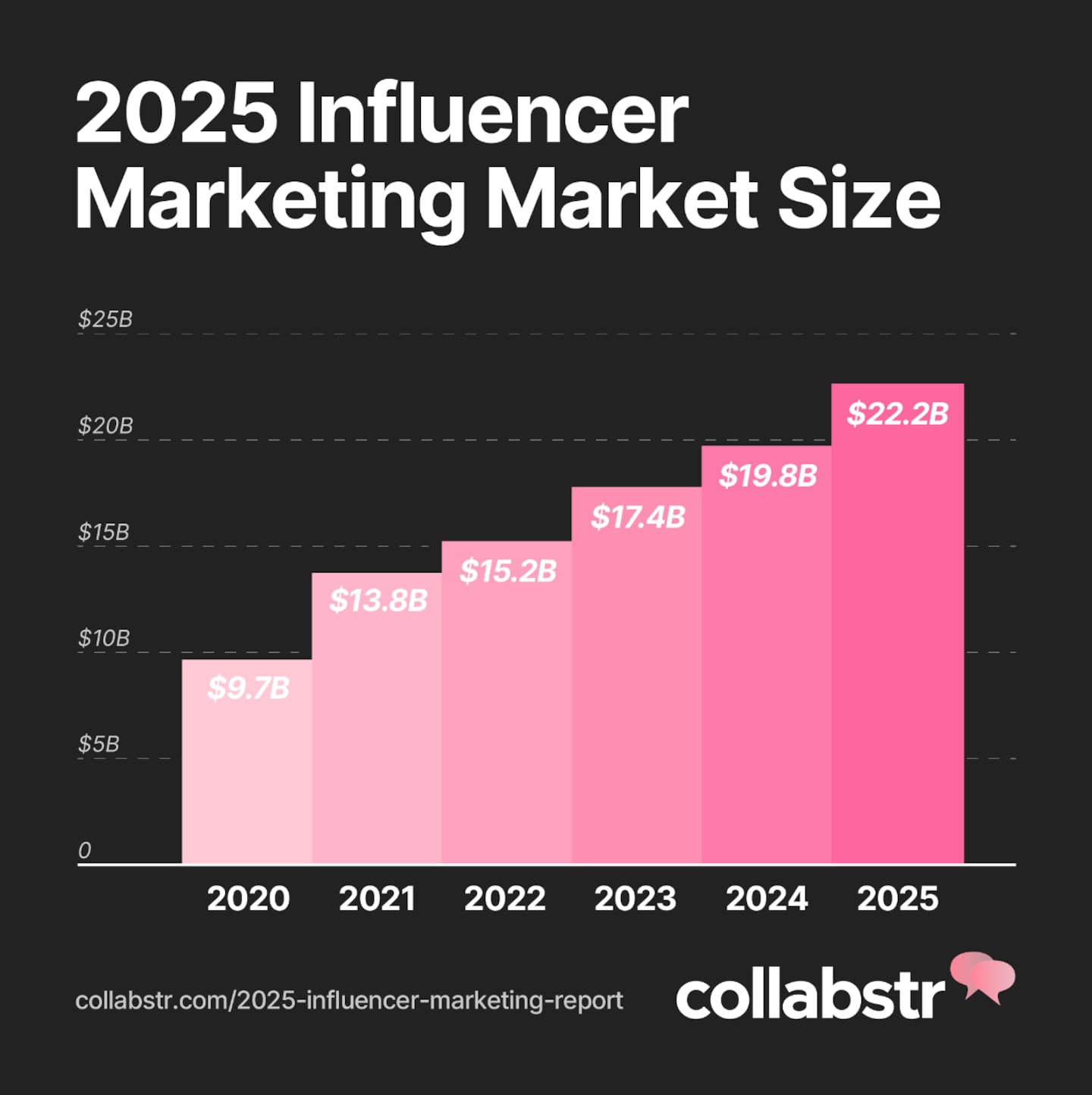 • The influencer marketing industry is set to grow 12.12% to $22.2 billion in 2025.