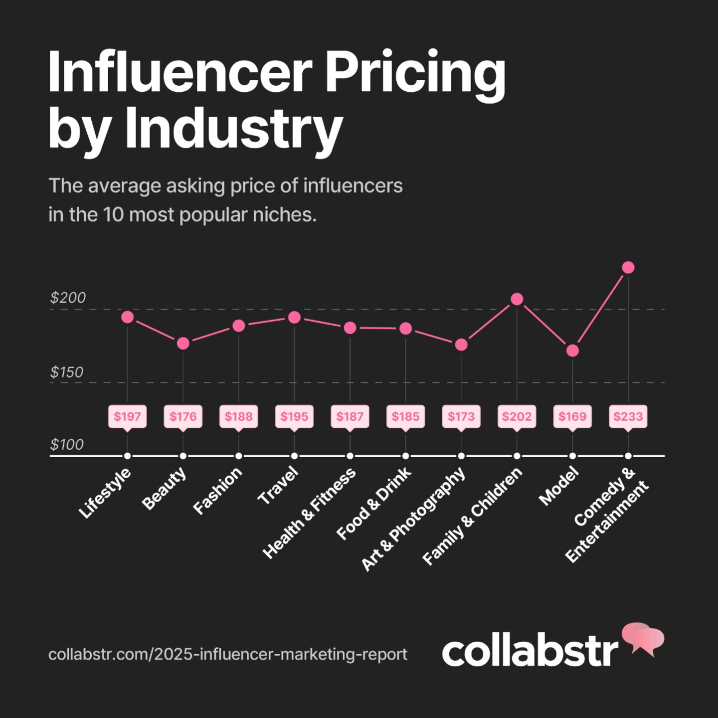Comedy & Entertainment commands the highest price of the most popular industries, with influencers in the Modeling sector coming in at the lowest, on average.