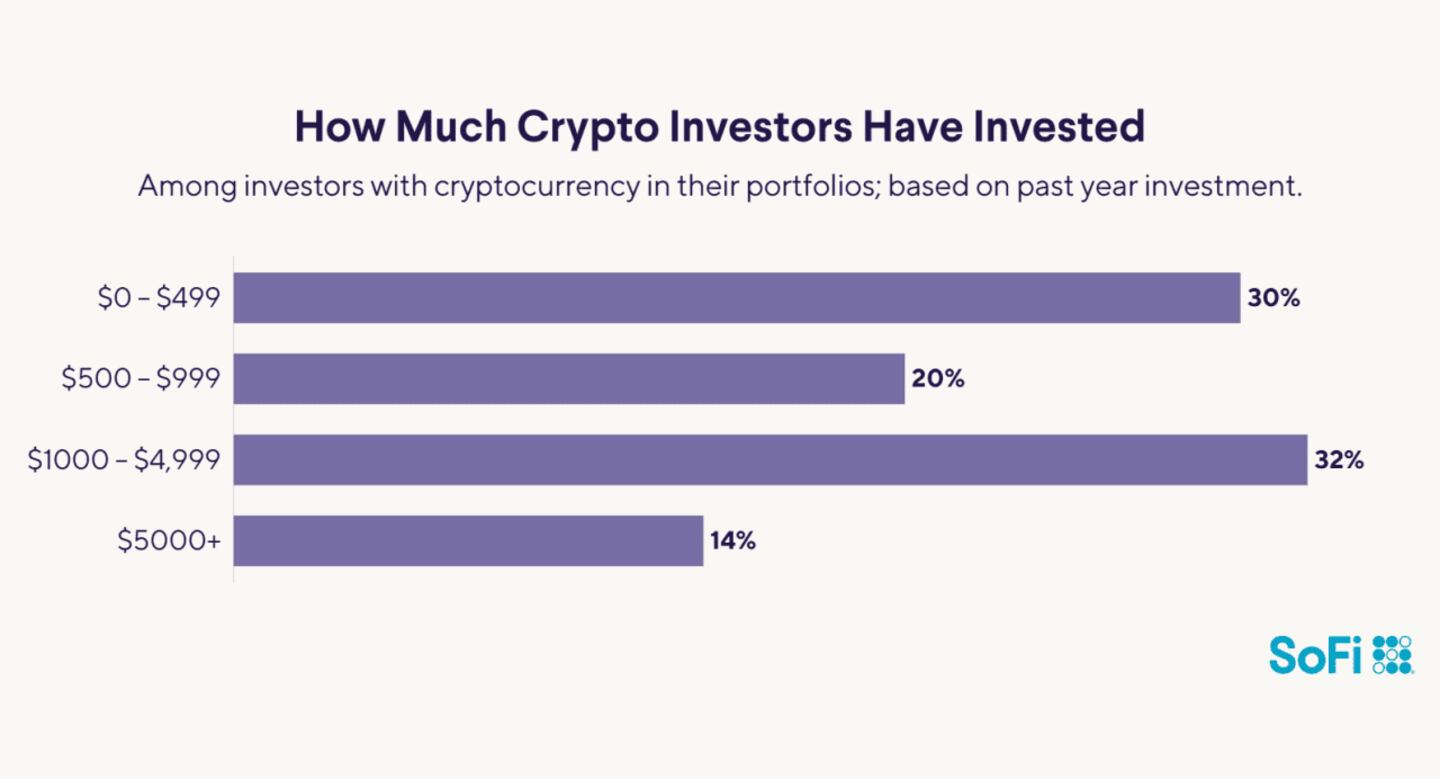 Most investors with cryptocurrency in their portfolios have invested at least $500 over the past year: