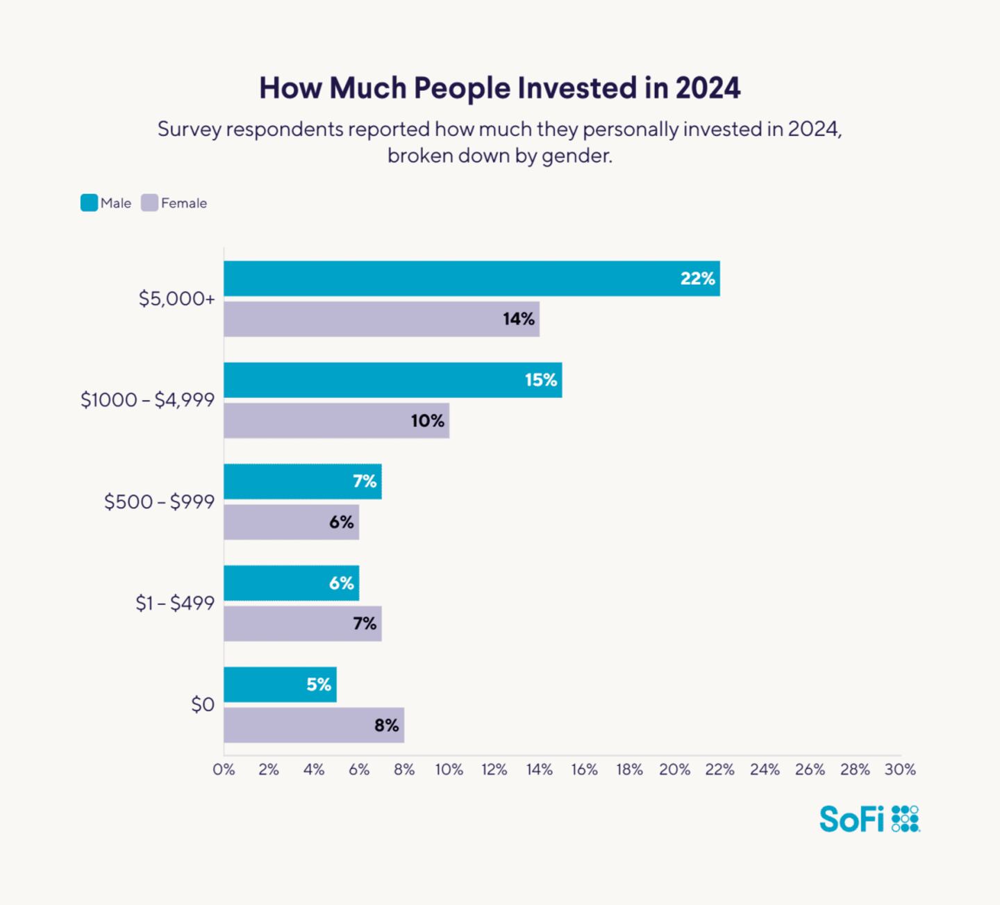Nearly nine out of 10 respondents invested money into their portfolios over the past year. Men were more likely than women to invest — and invest more money when they did.