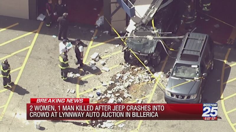 BILLERICA, Mass. — Police and federal authorities are investigating after three people were killed and several more injured by an out-of-control Jeep inside a Billerica auto auction Wednesday morning, but 25 Investigates has learned this isn’t the first time people have been seriously injured at the site.
