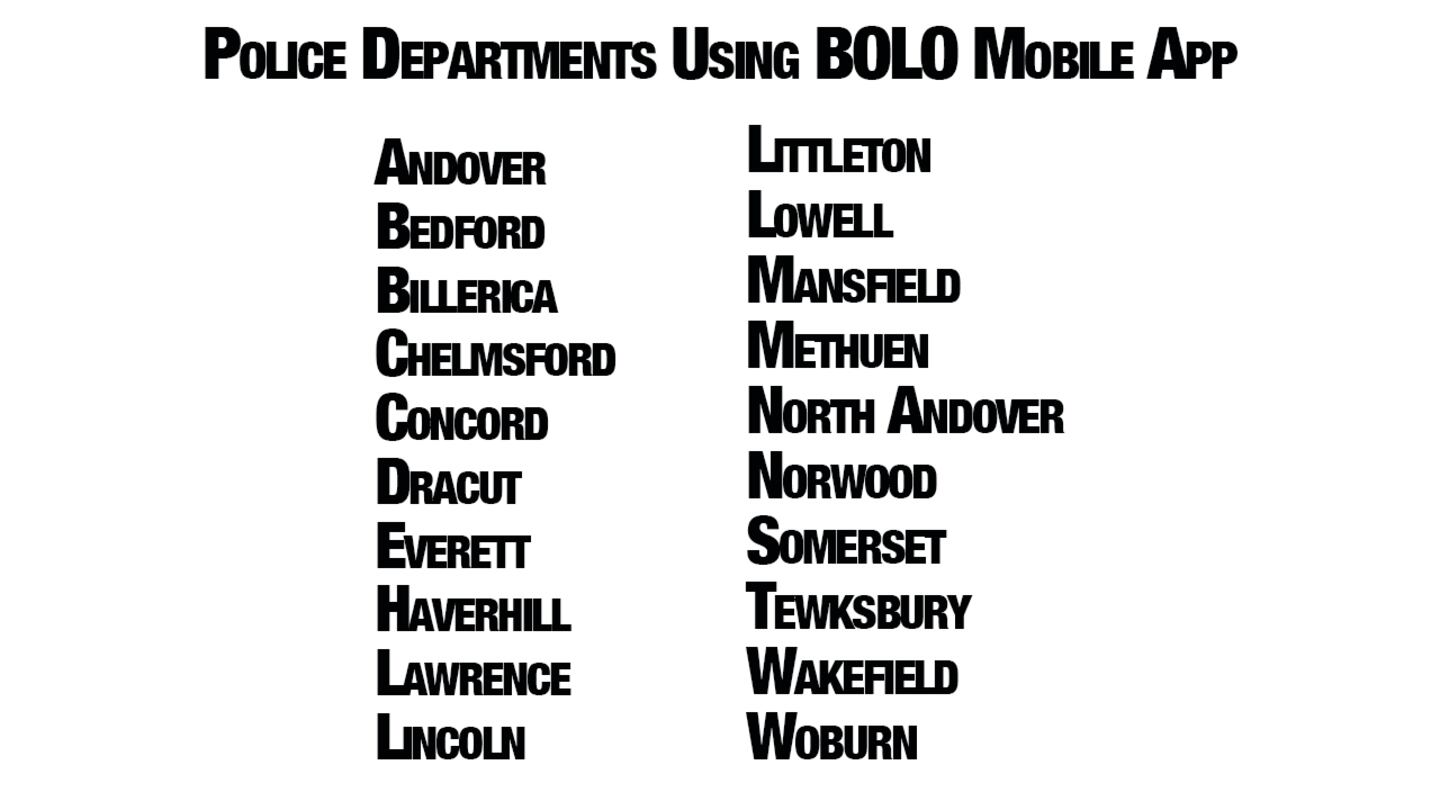 Methuen Police are among at least 20 departments in Massachusetts that have signed on with Chelmsford-based BOLO Mobile.