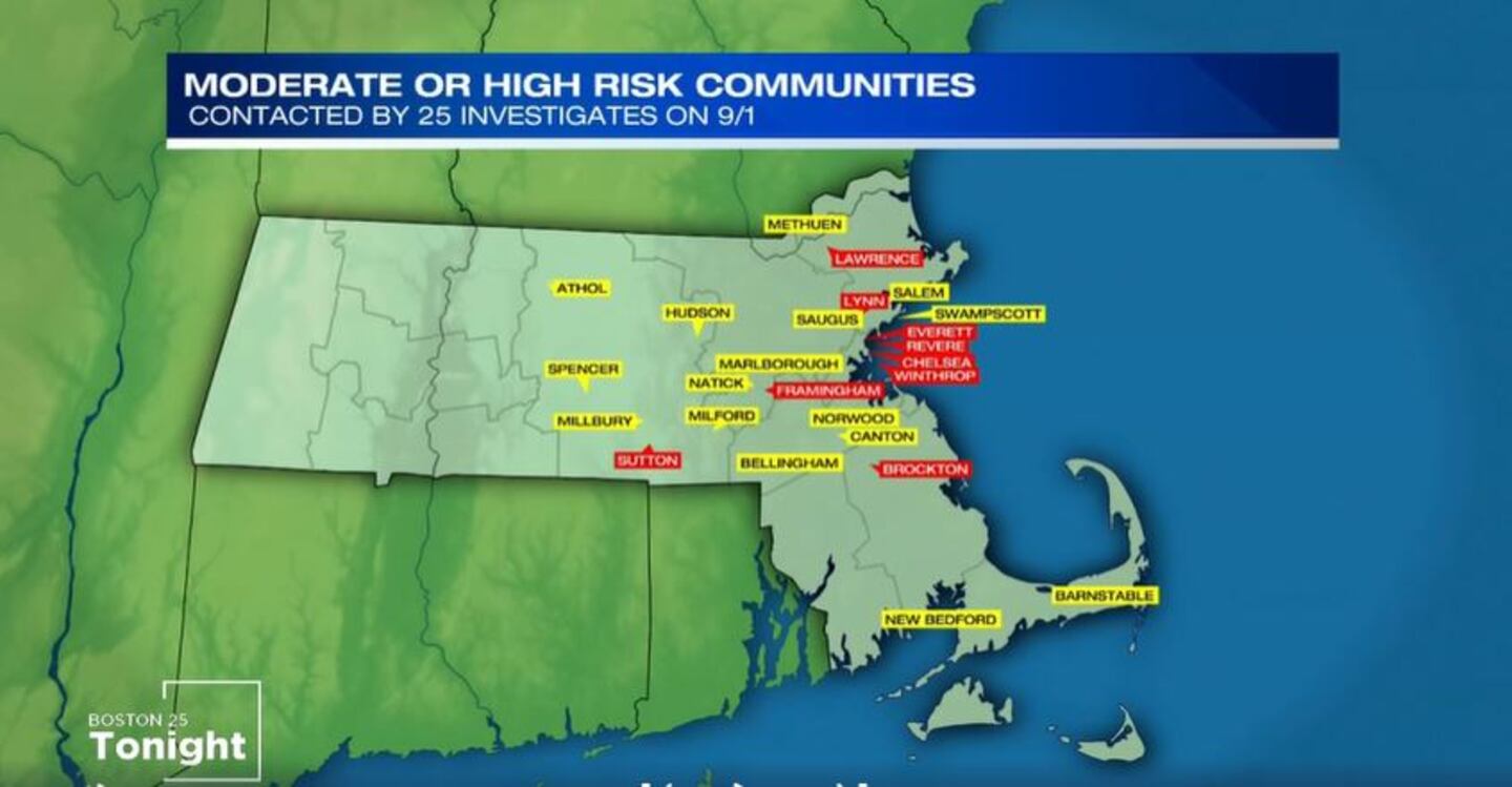 25 Investigates contacted 25 other cities and towns that were listed as moderate- or high-risk on the state’s town-by-town COVID-19 map in early September and asked about their enforcement.