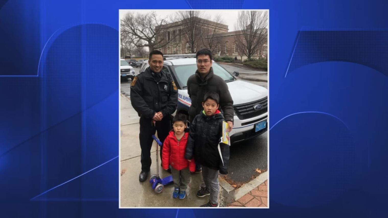 Officer Shinai Hattori with yesterday's 3 year old pedestrian crash victim and his family. The youngster is doing well and Officer Hattori gave him a few gifts and a tour of a cruiser. 552 pic.twitter.com/pRiYWjf0n0