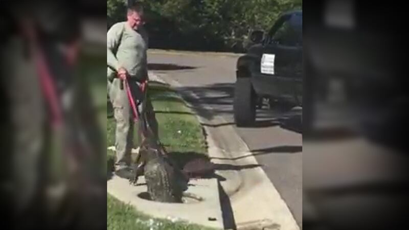 The gator was trying to climb out of the sewer a few houses down from Ruel’s house when it got stuck.