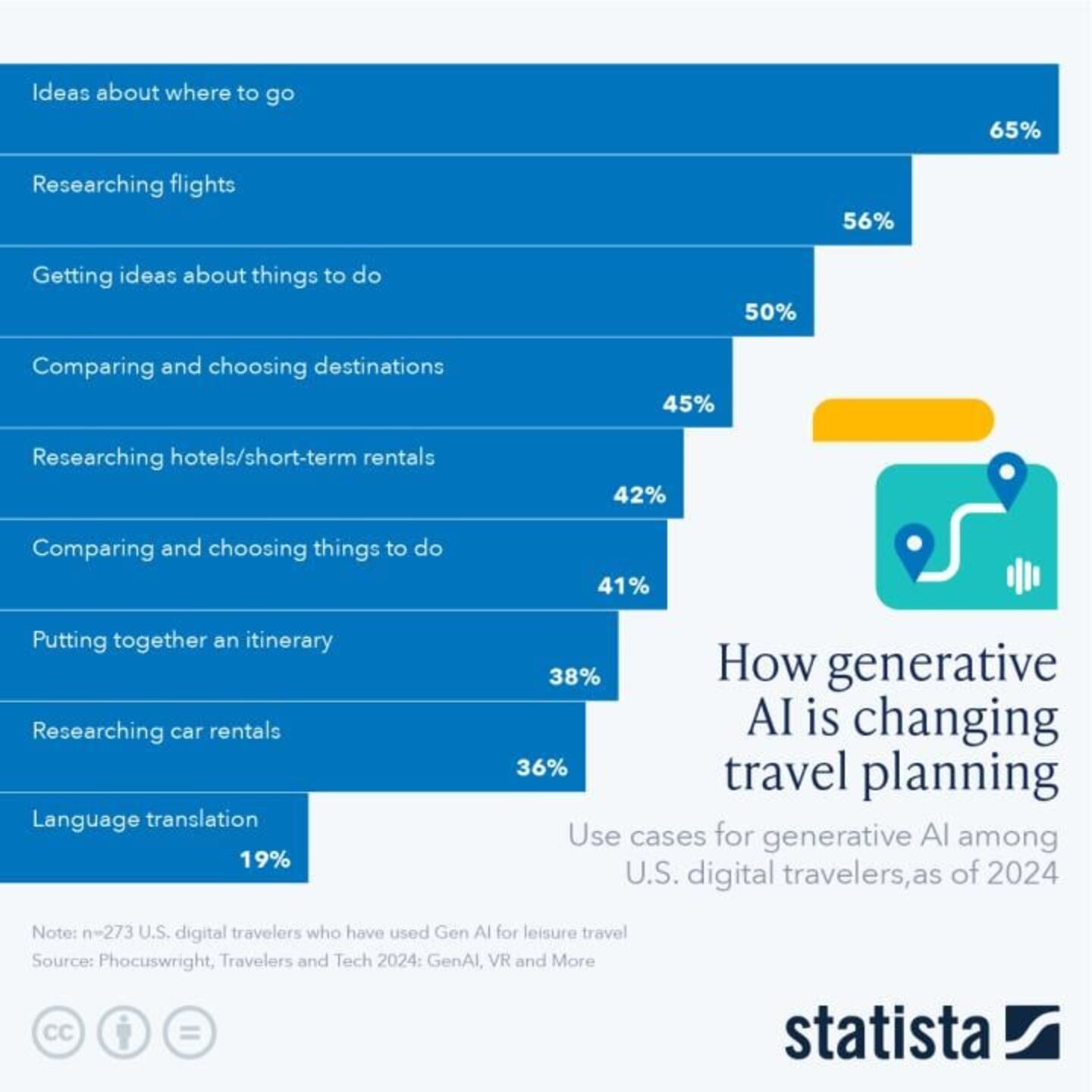 Now, we know that people are actively seeking out AI tools to plan their vacations. And why would they not? With generative AI and with the right prompt, companies can now create travel suggestions for people tailored to match their unique preferences and interests—or at least claim to do so. It's like having a travel agent who understands what you want. Let's further explore the use cases of generative AI in travel planning.