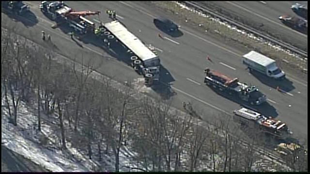 Police said the crash happened on the northbound side of the highway just before Route 62. Three lanes of the highway as well as the breakdown lane were closed. Traffic was slowly getting by in one lane of the highway.