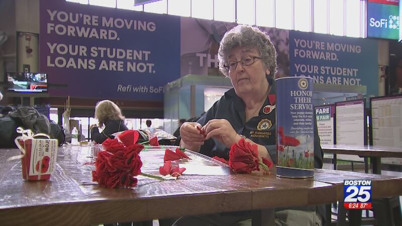 BOSTON - Ann Fournier says she's had the nickname "The Poppy Lady" for 30 years, the amount of time she's been making handmade poppies in honor of veterans and soldiers.
