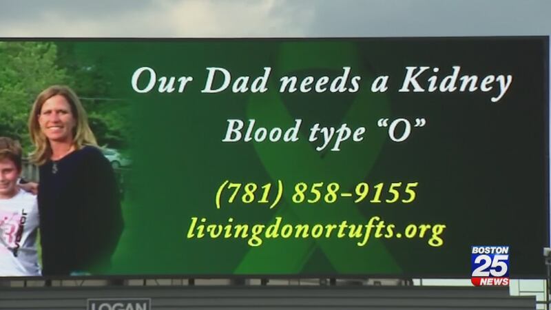 MEDFORD, Mass. — A community of friends and even strangers rallied together to fund a billboard ad on I-93 in Stoneham to help a Medford father in need of a kidney.