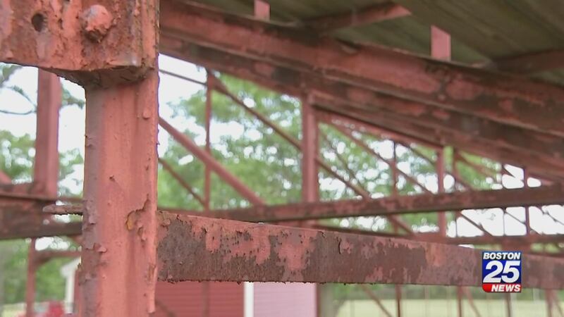 N. ATTLEBOROUGH, Mass. — Sky 25 on Tuesday captured workers blocking off the bleachers at North Attleborough High School with boards.