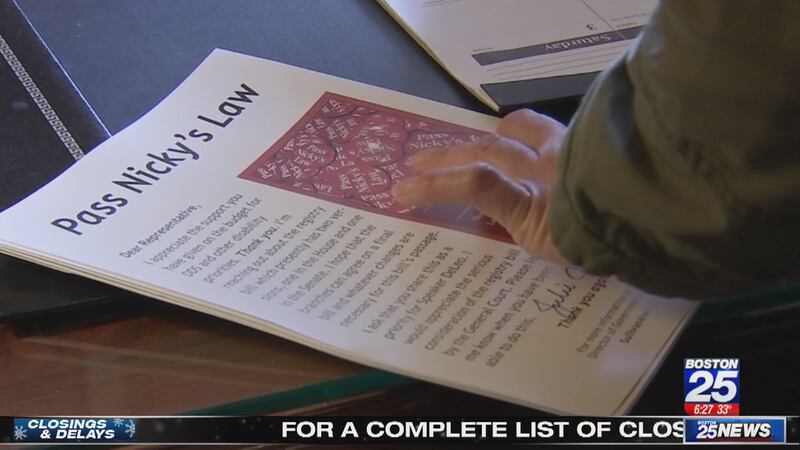 At the Mass. State House, parents made a plea for help. A plea for Nicky's Law that stems from four years ago when Cheryl and Alex's son Nicky had been abused while at a day program. He has autism and is non-verbal.