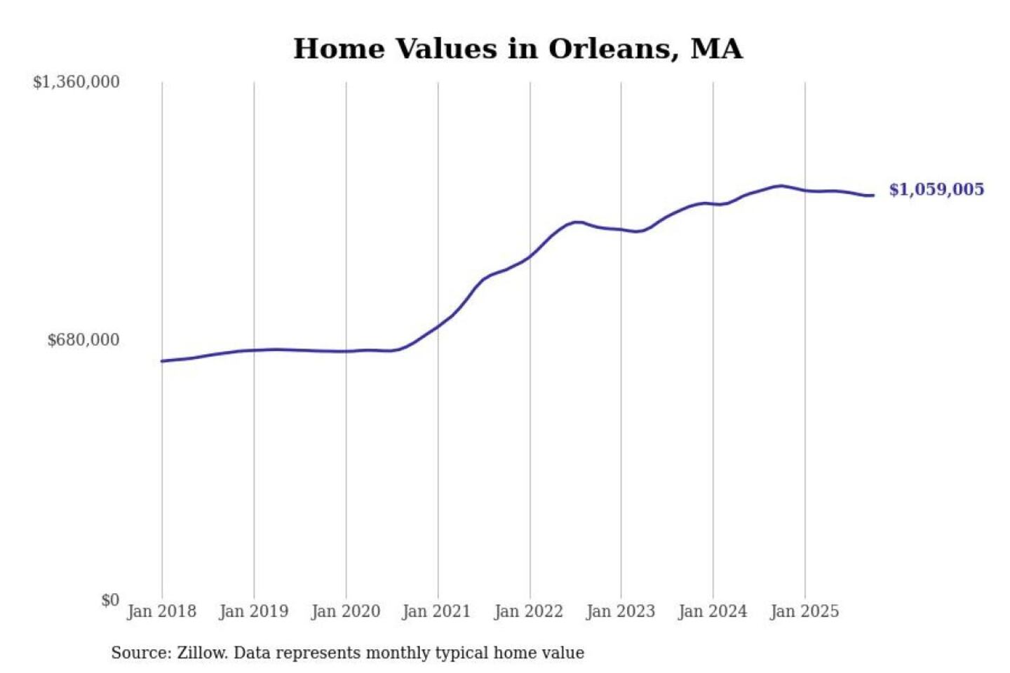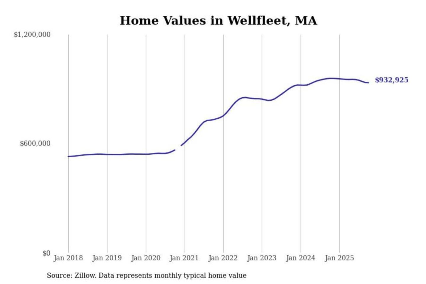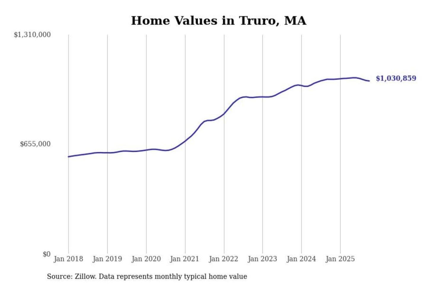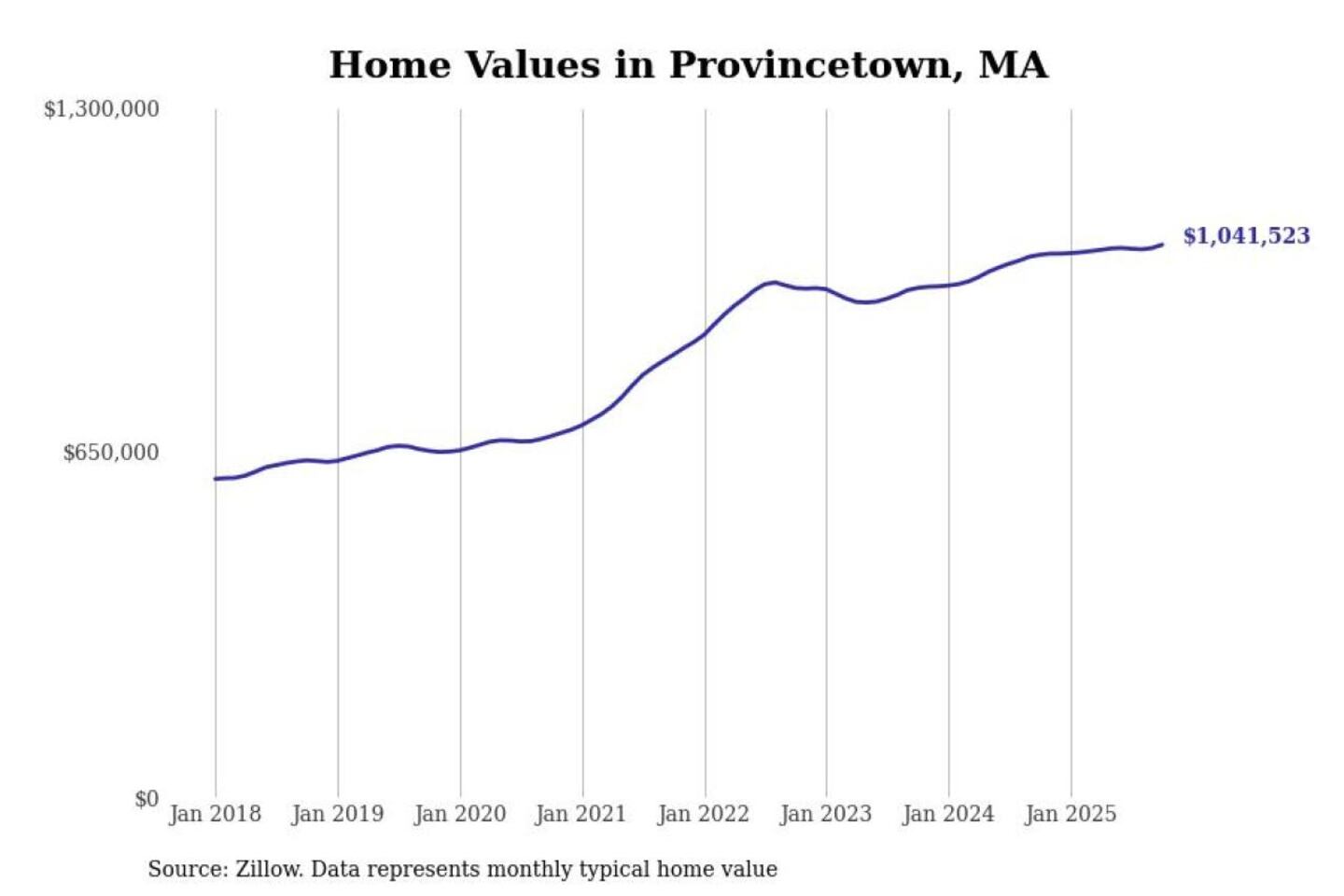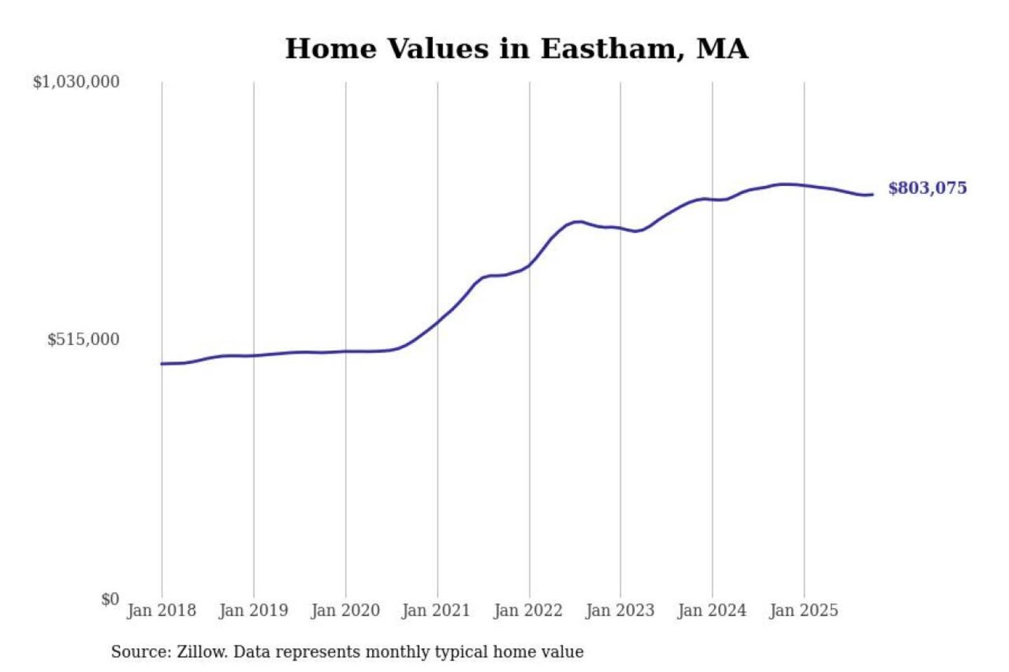 Stacker compiled a list of cities with the most expensive homes in the Barnstable Town, MA metro area using data from Zillow. Charts show the monthly typical home value since January 2018.