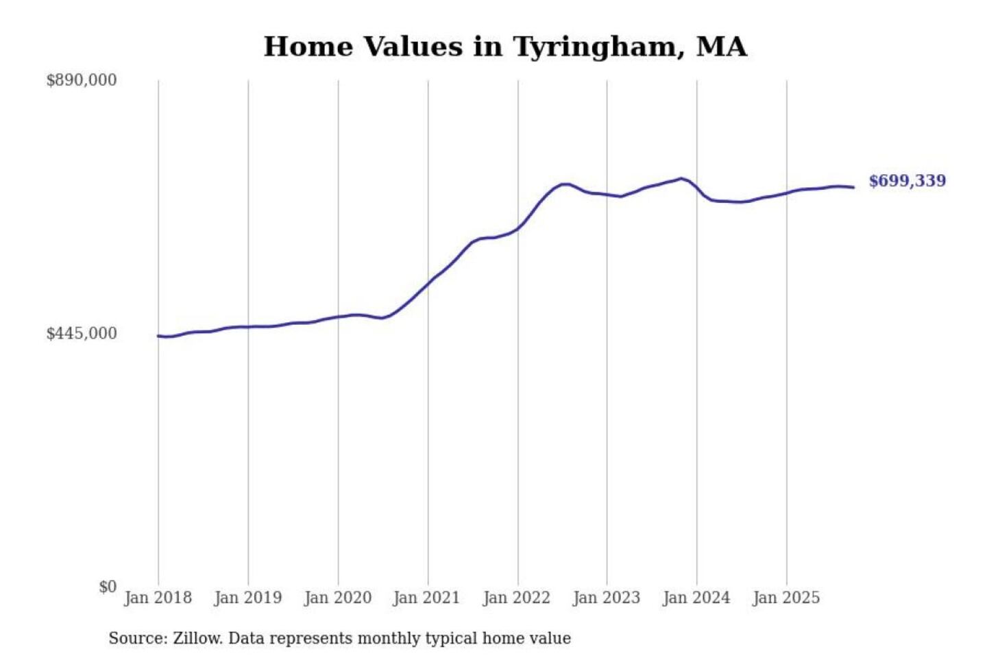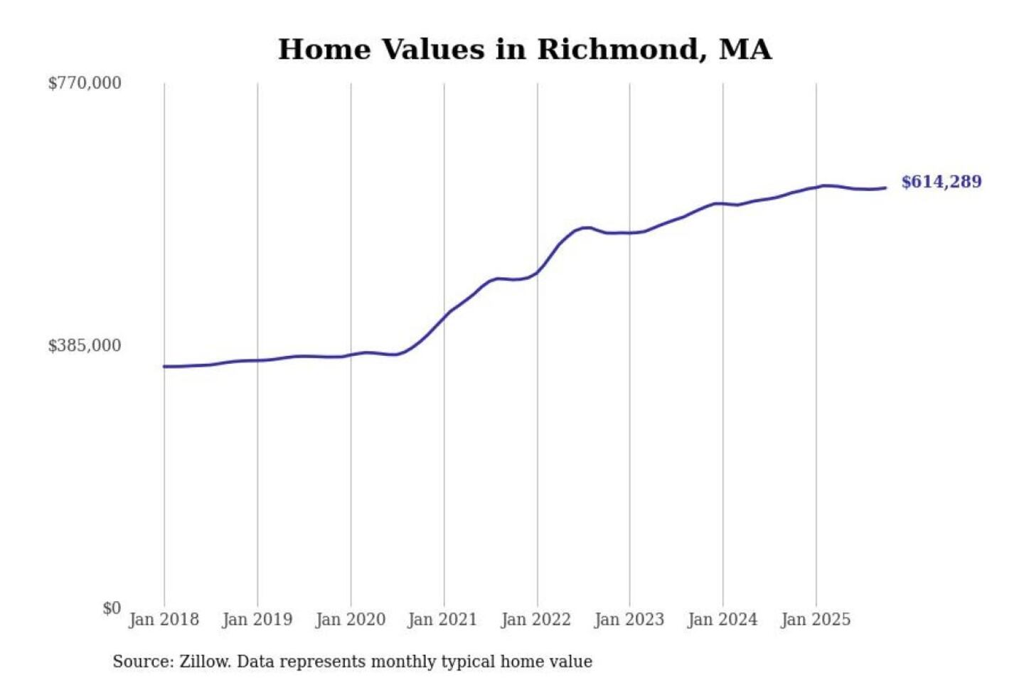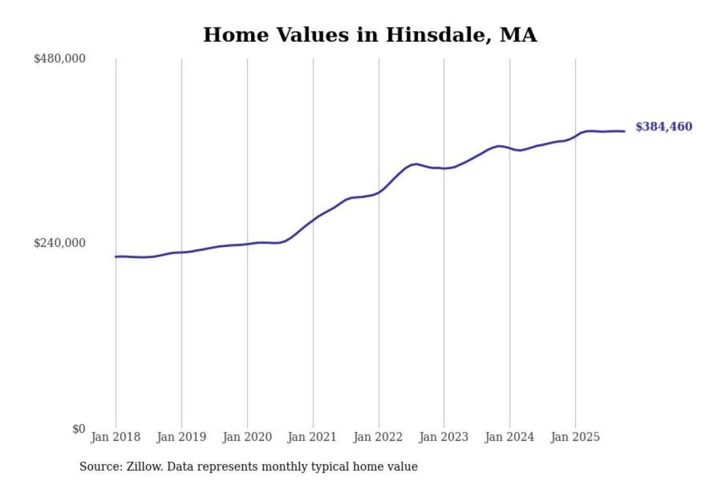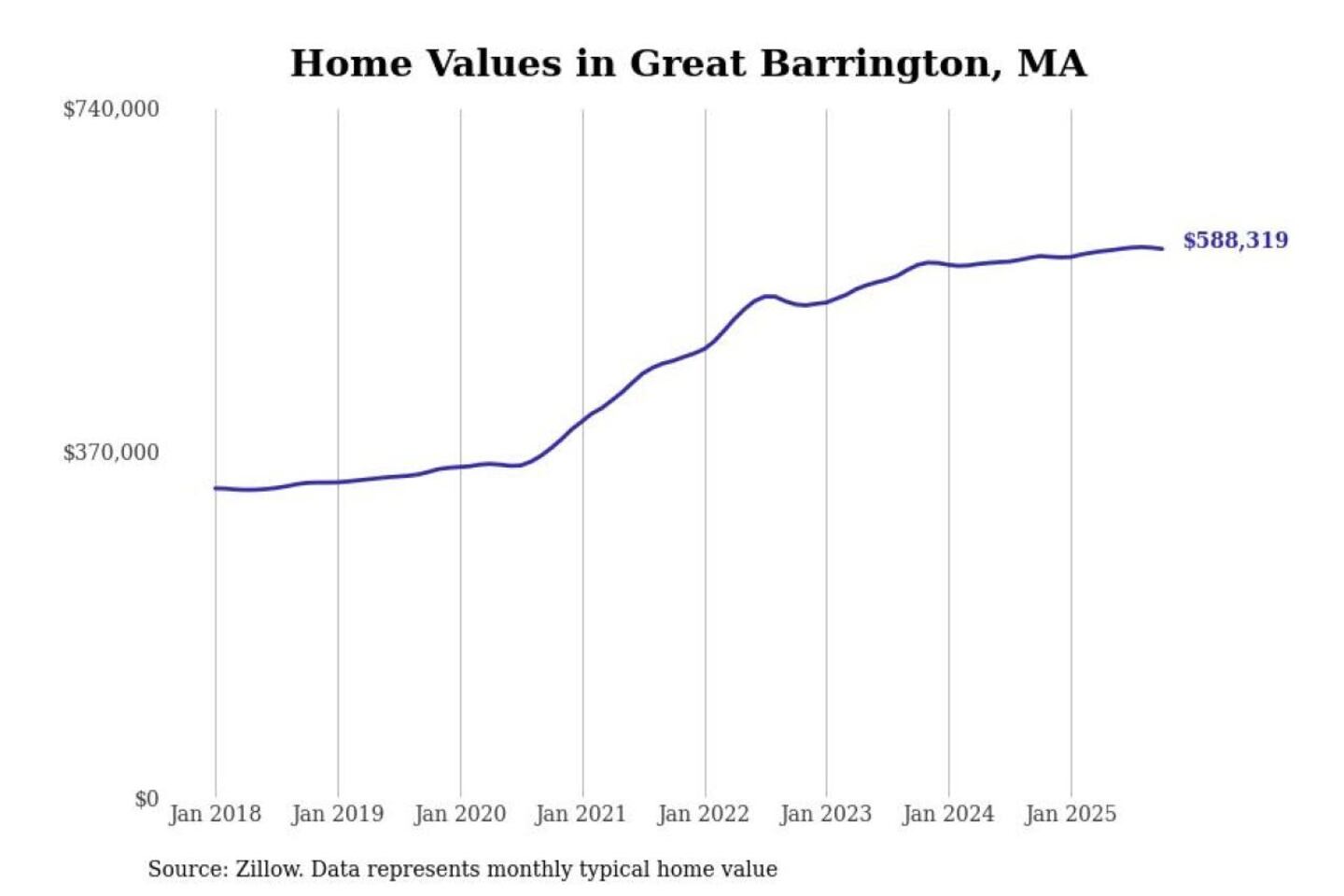 Stacker compiled a list of cities with the most expensive homes in the Pittsfield, MA metro area using data from Zillow. Charts show the monthly typical home value since January 2018.