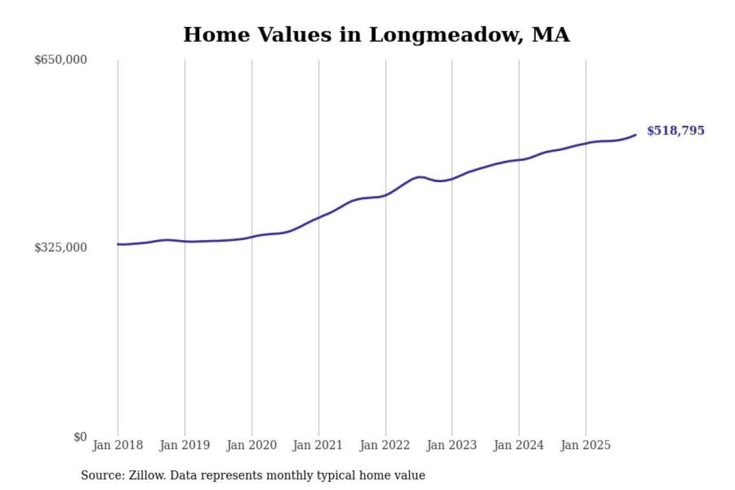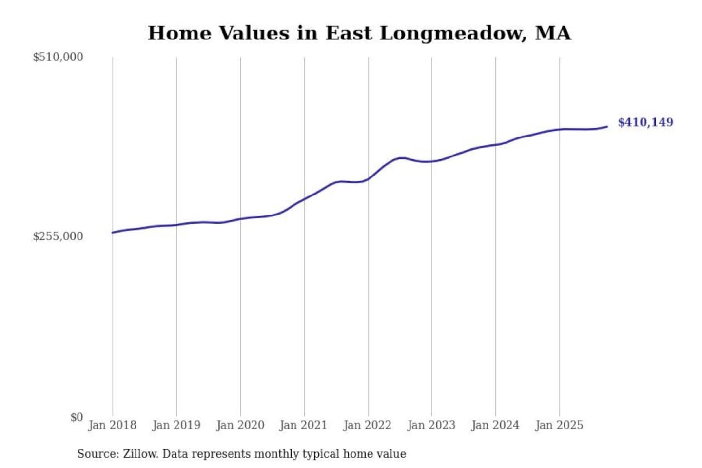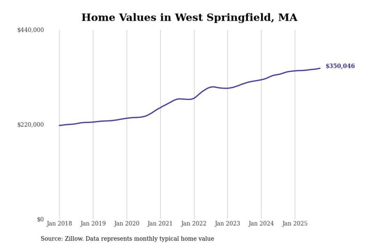 Stacker compiled a list of cities with the most expensive homes in the Springfield, MA metro area using data from Zillow. Charts show the monthly typical home value since January 2018.