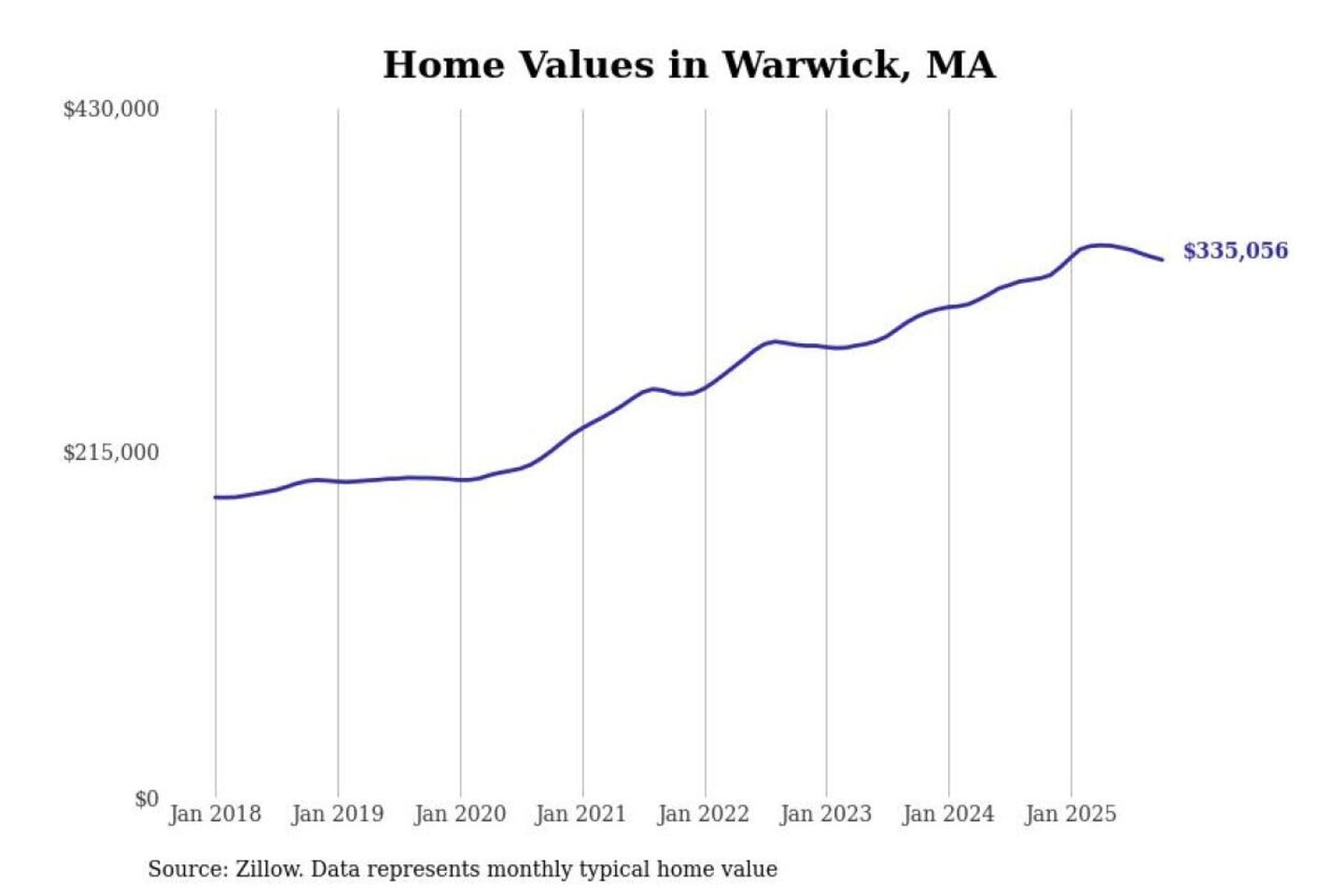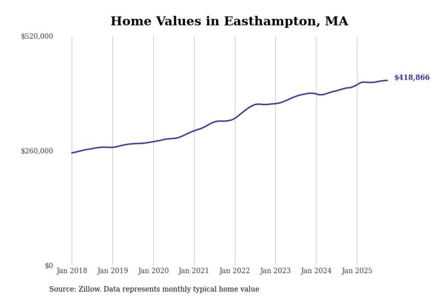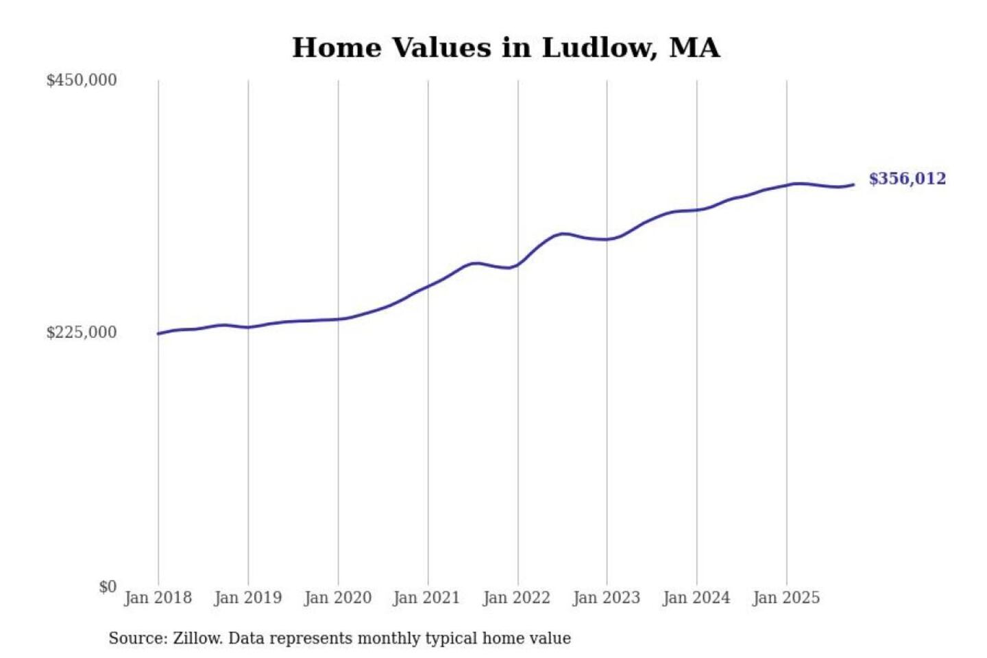 Stacker compiled a list of cities with the most expensive homes in the Springfield, MA metro area using data from Zillow. Charts show the monthly typical home value since January 2018.