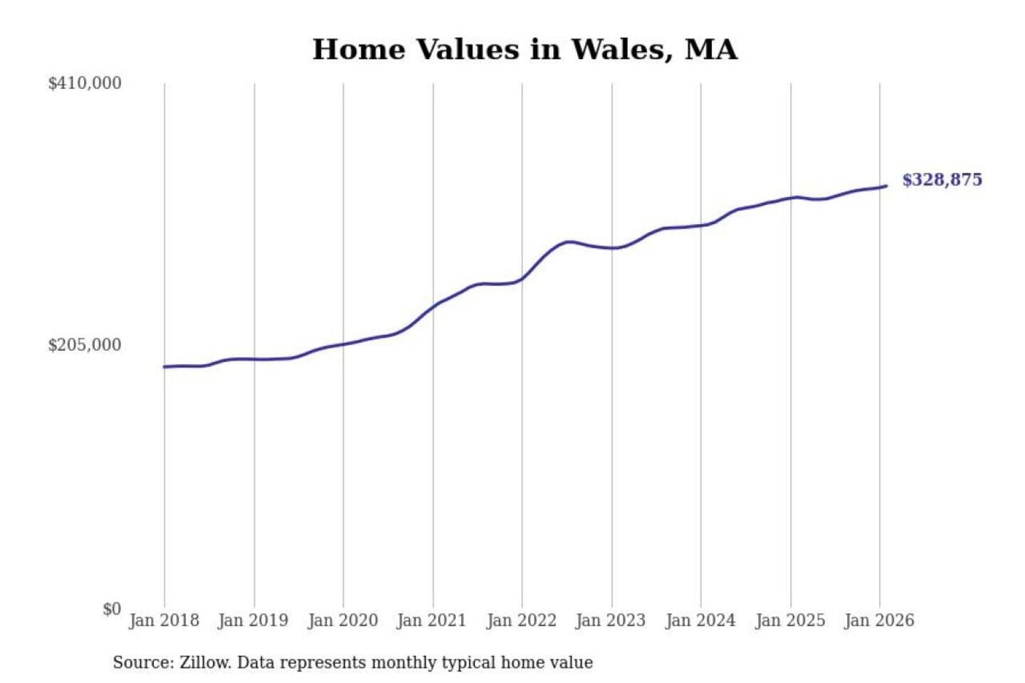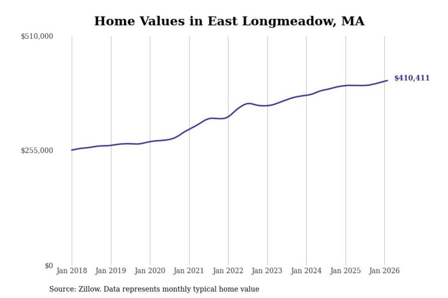 Stacker compiled a list of cities with the most expensive homes in the Springfield, MA metro area using data from Zillow. Charts show the monthly typical home value since January 2018.