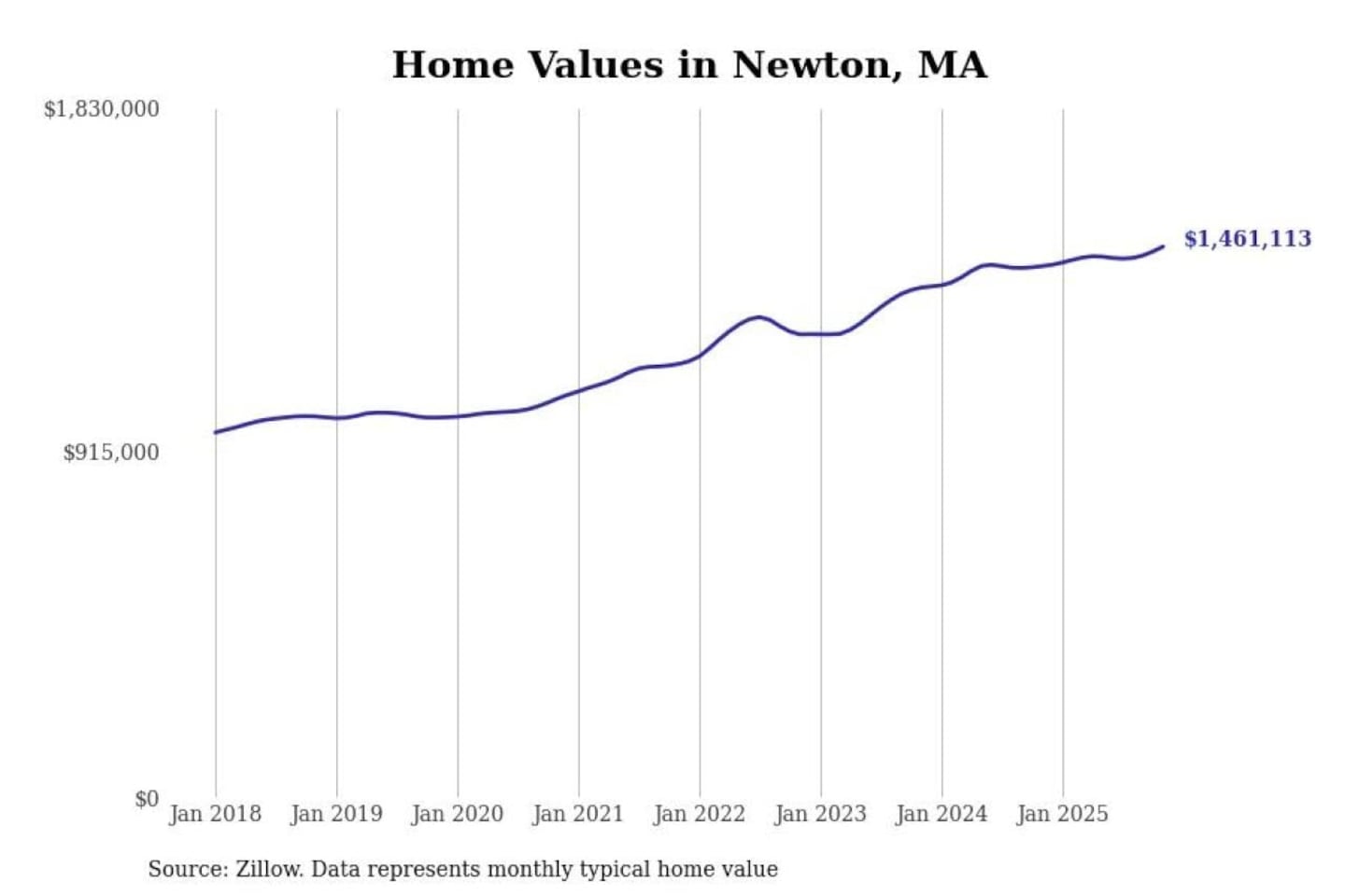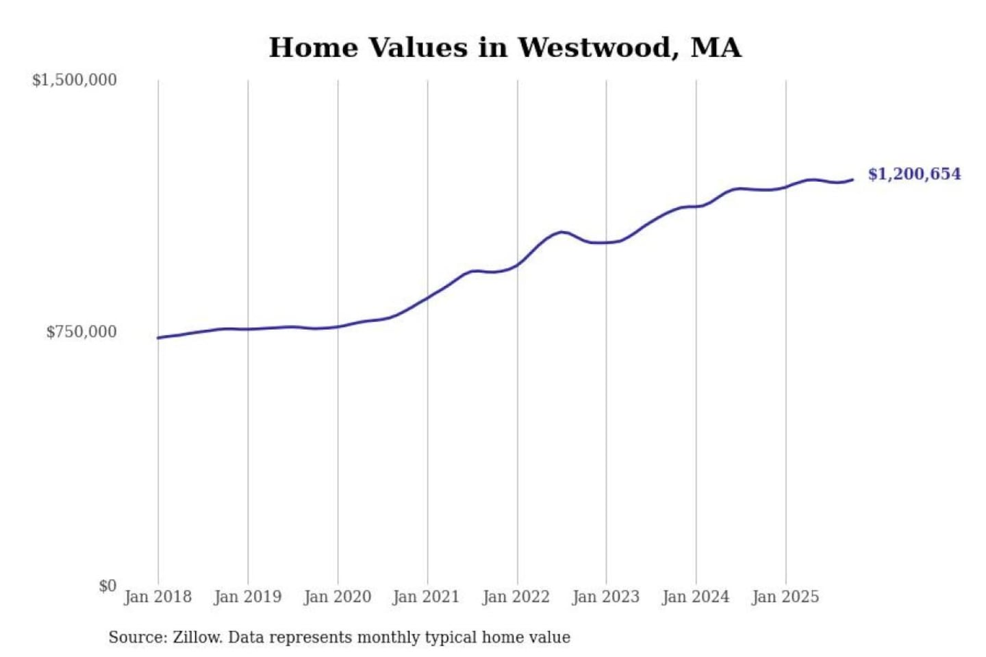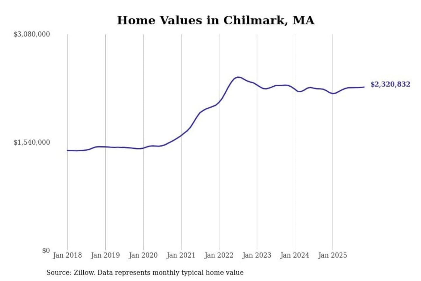 Stacker compiled a list of cities with the most expensive homes in Massachusetts using data from Zillow. Cities are ranked by the Zillow Home Values Index for all homes as of November 2025. The charts in this story were created automatically using Matplotlib.
