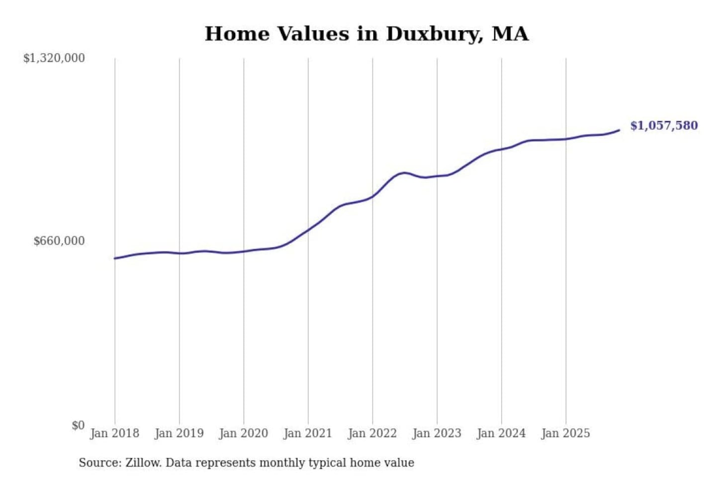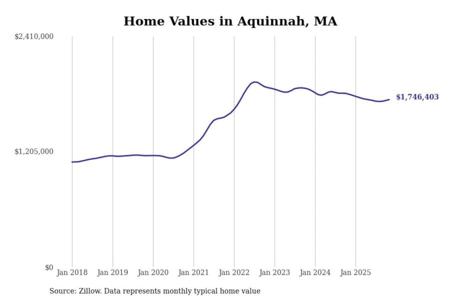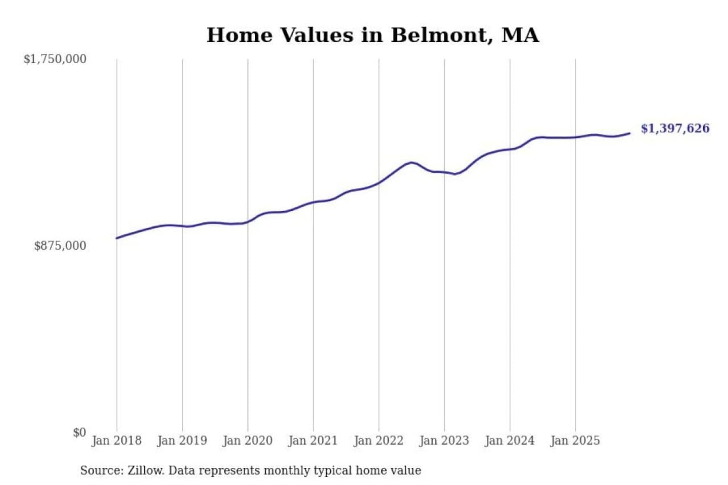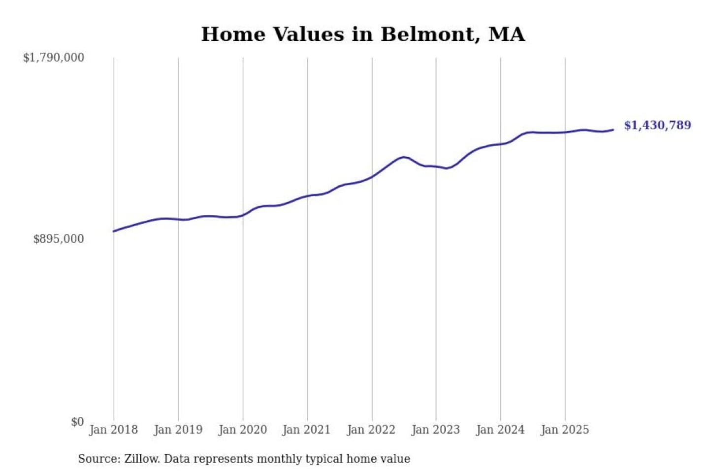 Stacker compiled a list of cities with the most expensive homes in Massachusetts using data from Zillow. Cities are ranked by the Zillow Home Values Index for all homes as of November 2025. The charts in this story were created automatically using Matplotlib.