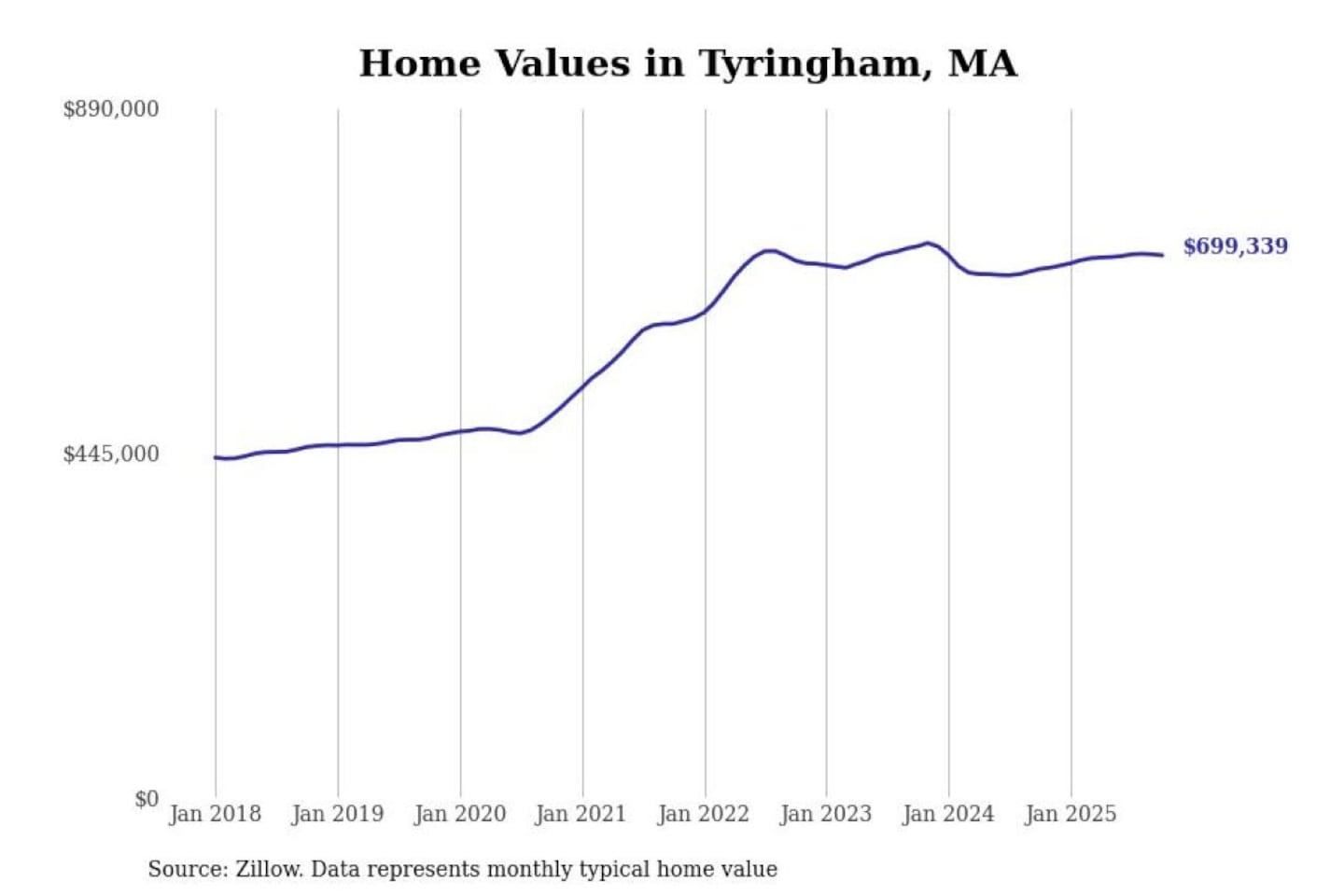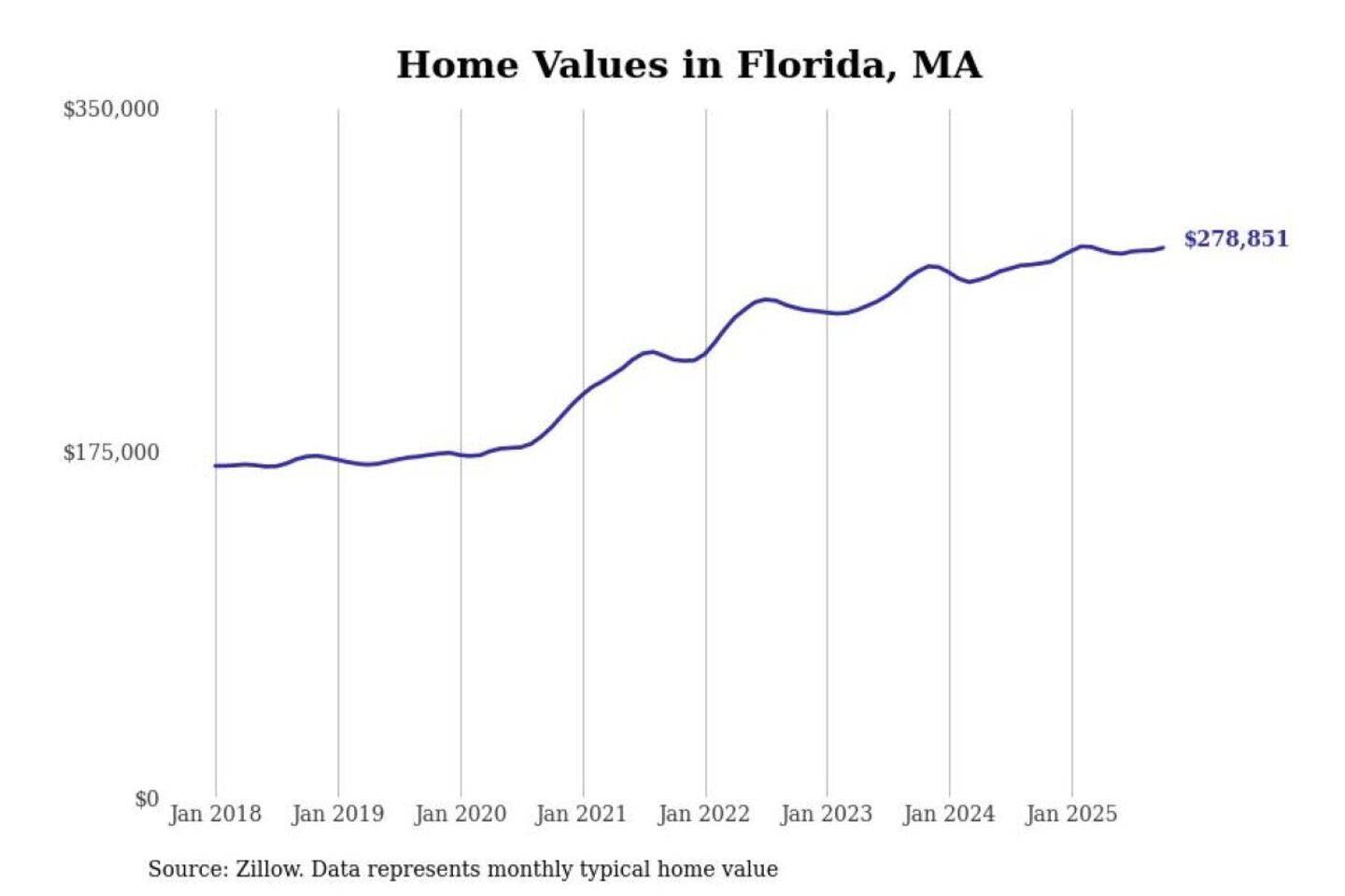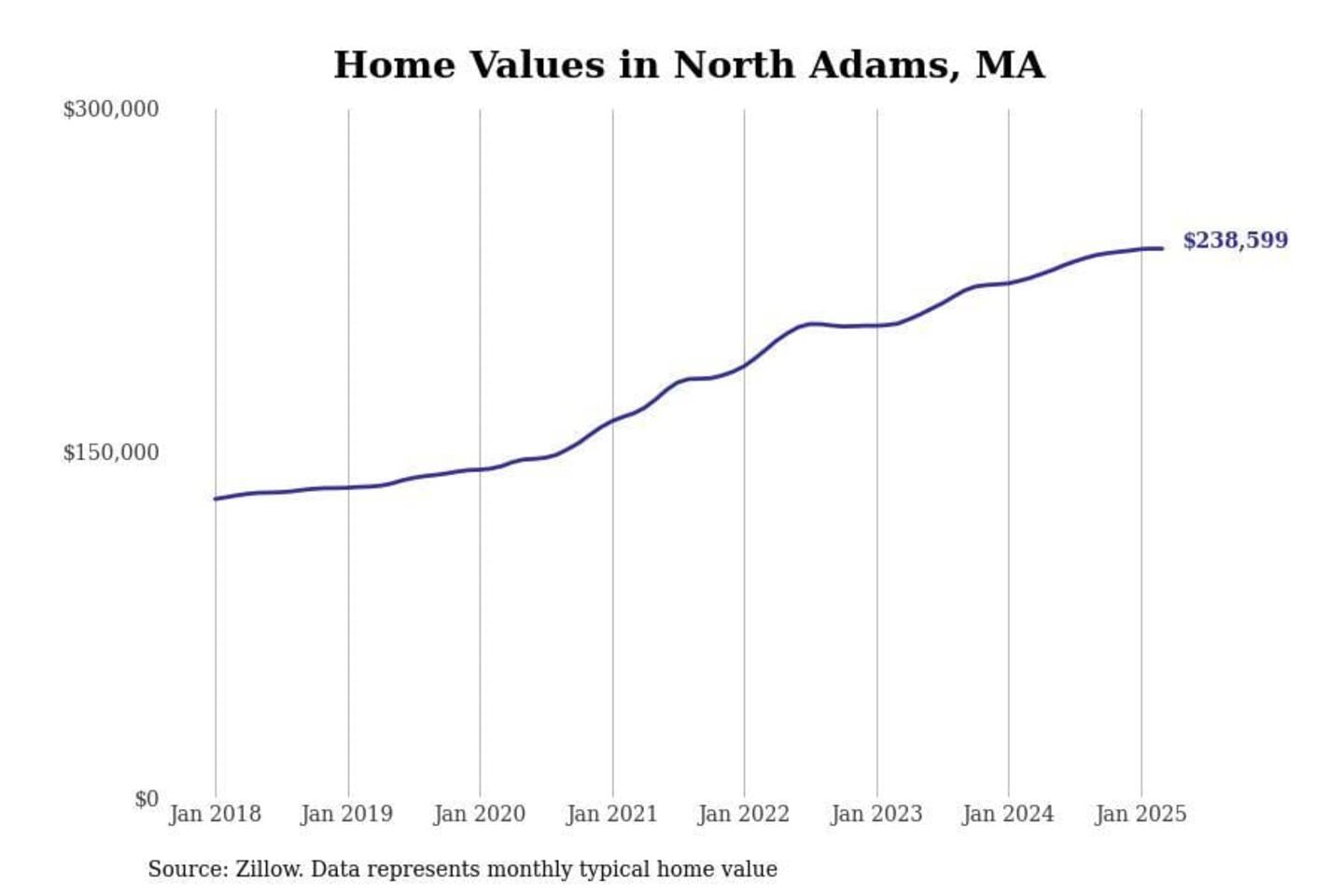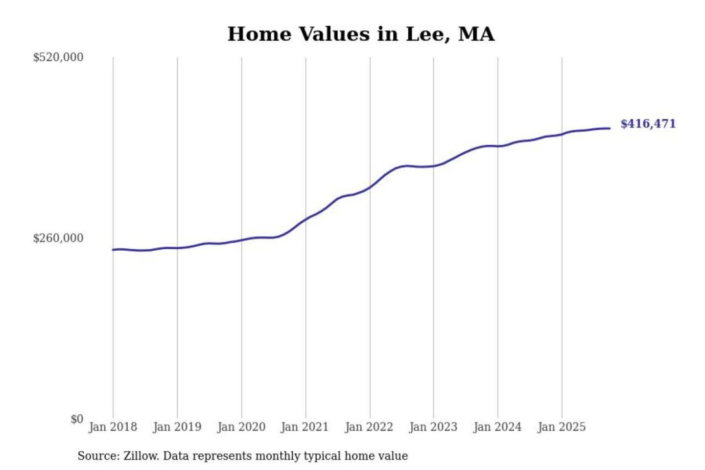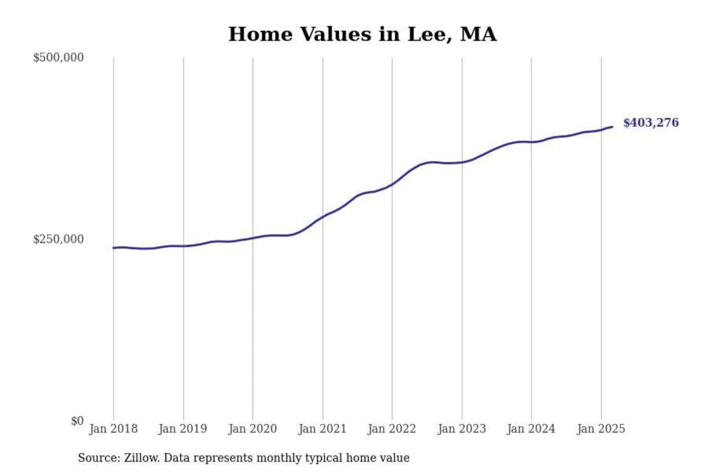 Stacker compiled a list of cities with the most expensive homes in the Pittsfield metro area using data from Zillow. Charts show the monthly typical home value since January 2018. All 29 cities and towns with data available were included in the list.