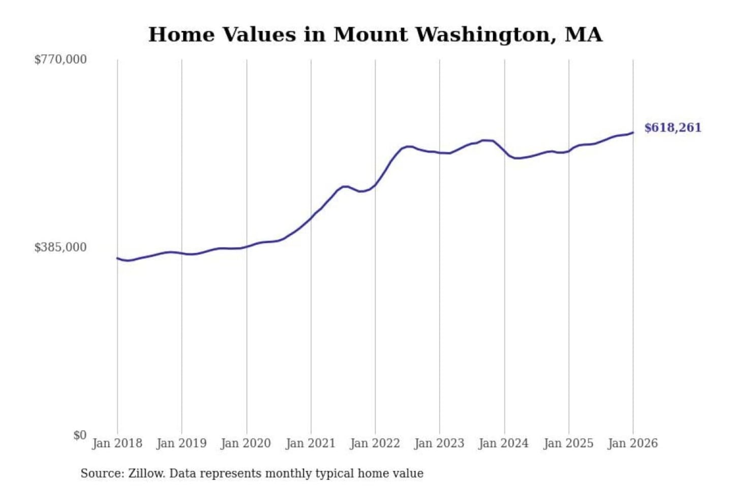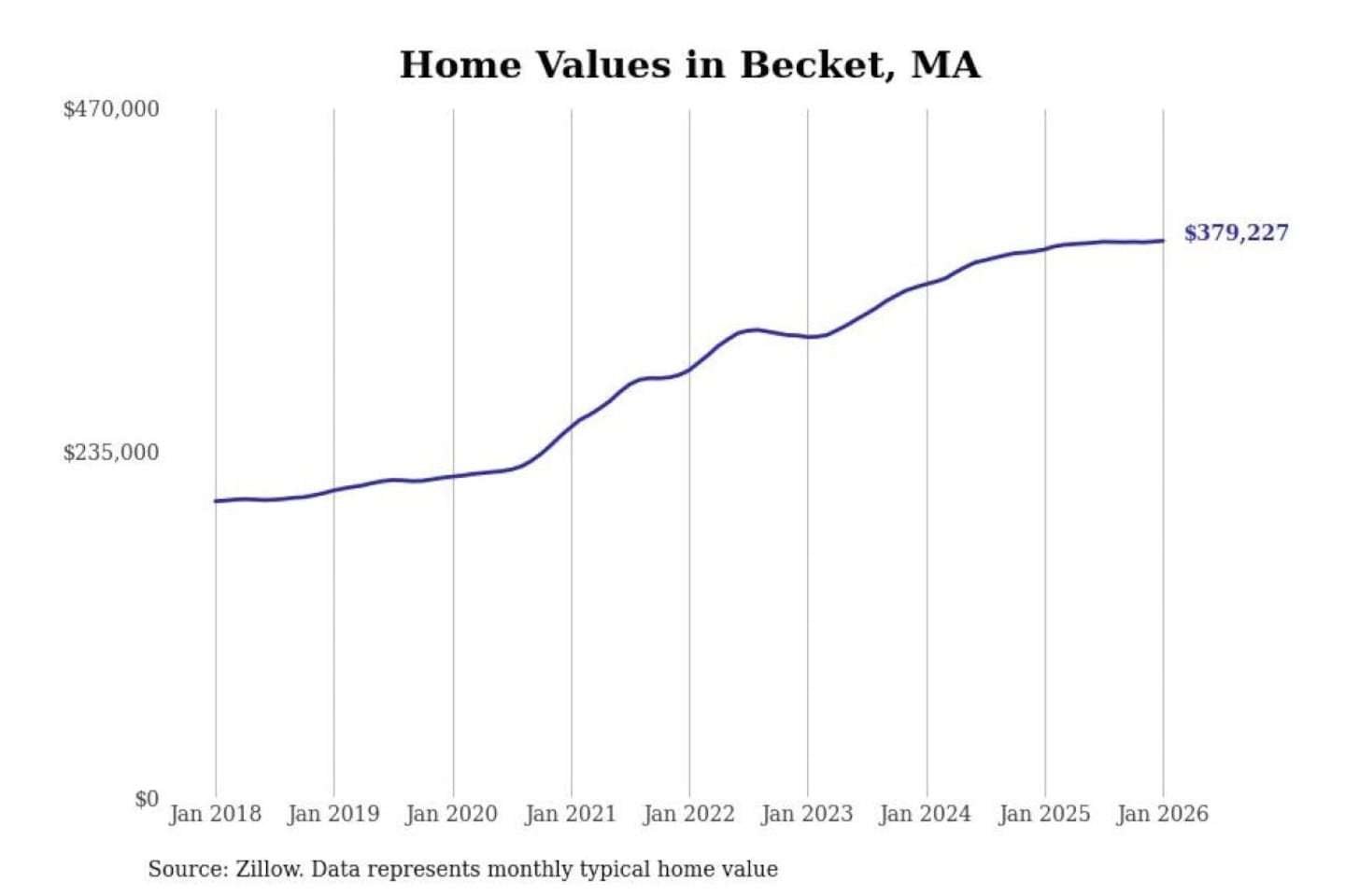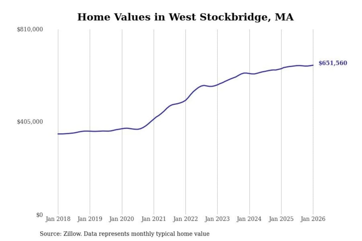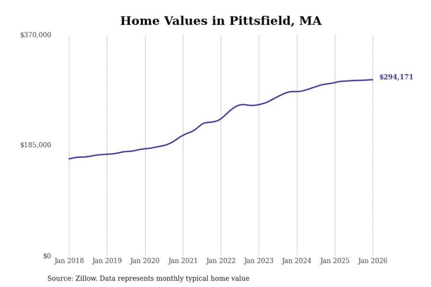 Stacker compiled a list of cities with the most expensive homes in the Pittsfield metro area using data from Zillow. Charts show the monthly typical home value since January 2018. All 29 cities and towns with data available were included in the list.