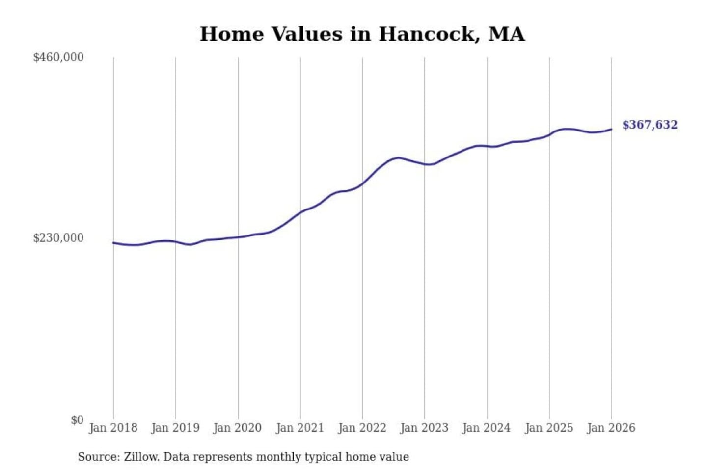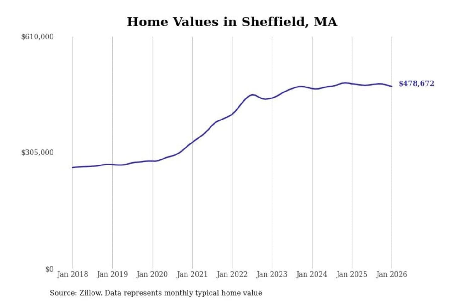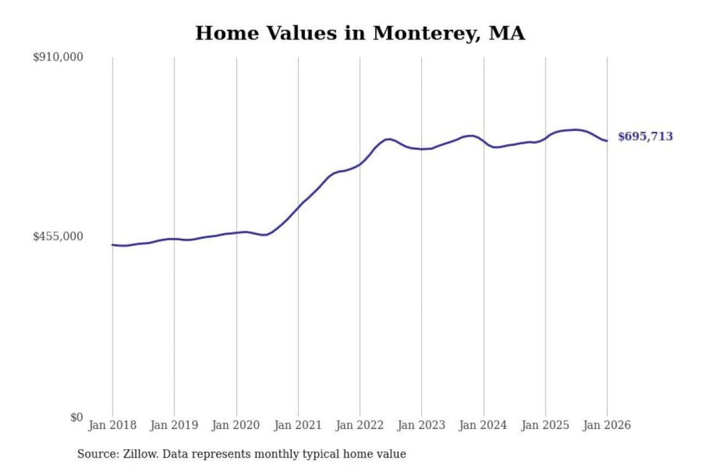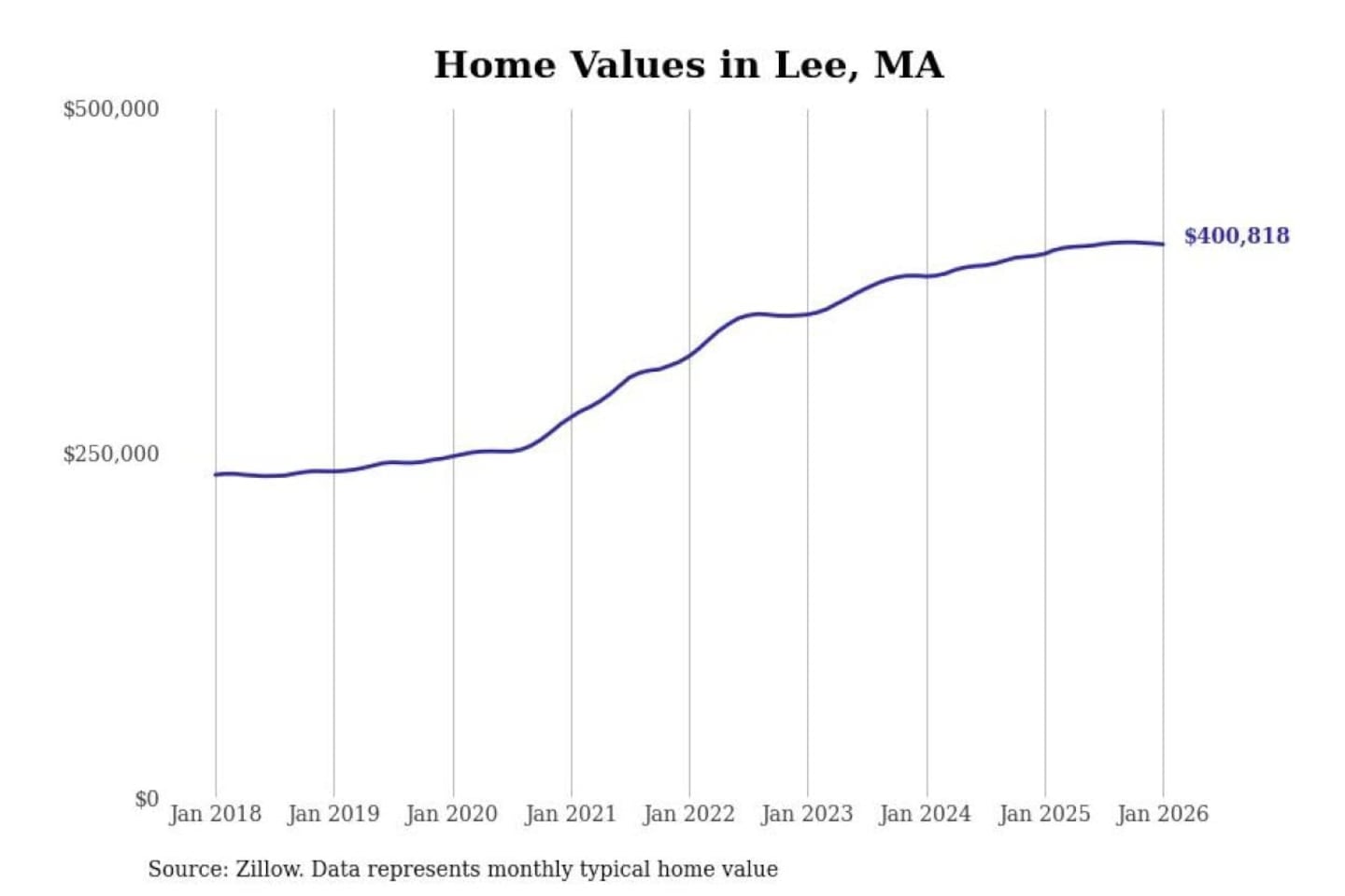 Stacker compiled a list of cities with the most expensive homes in the Pittsfield metro area using data from Zillow. Charts show the monthly typical home value since January 2018. All 29 cities and towns with data available were included in the list.