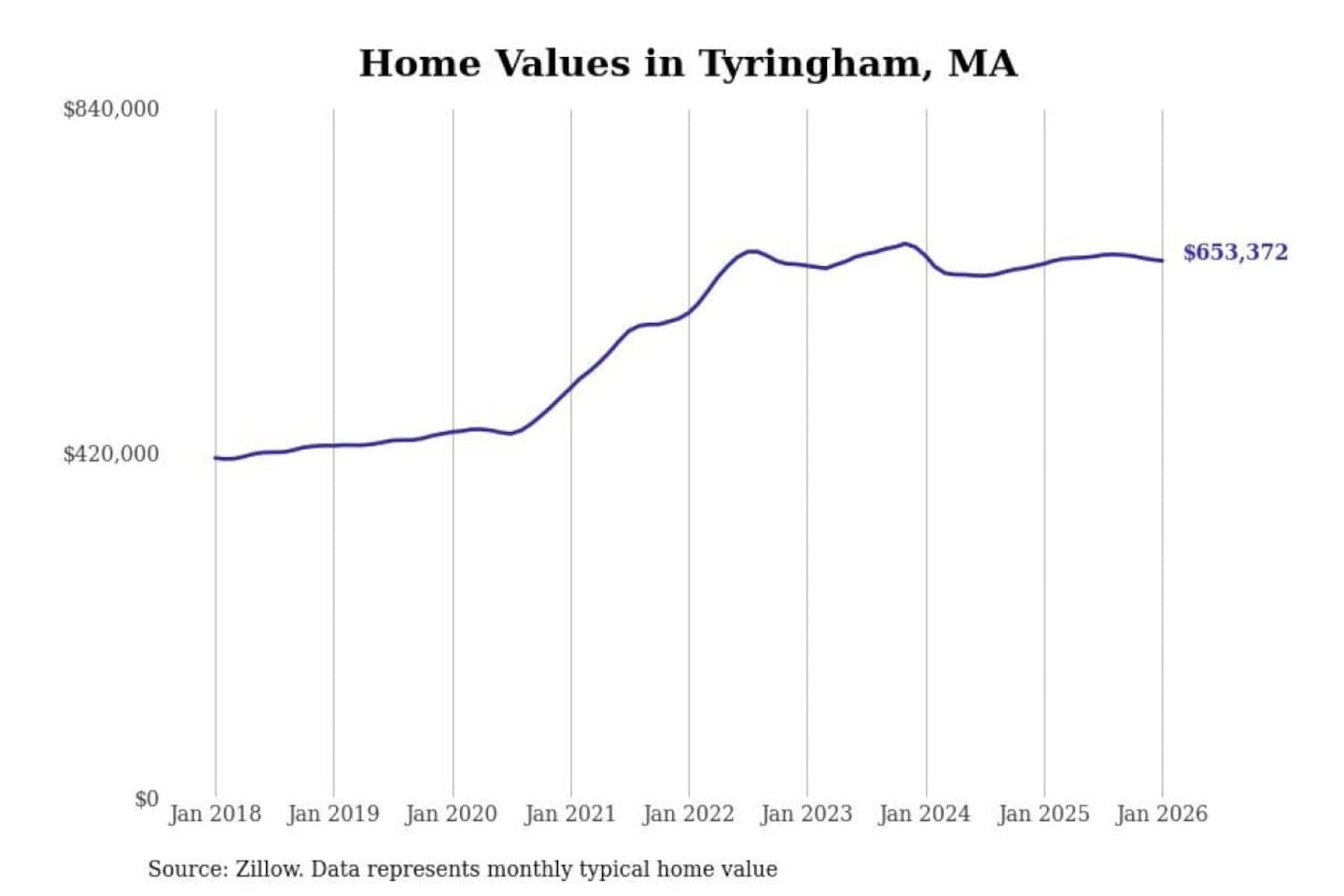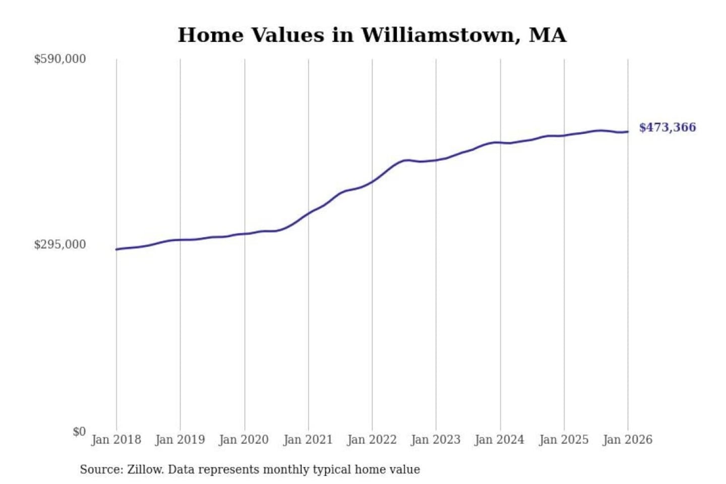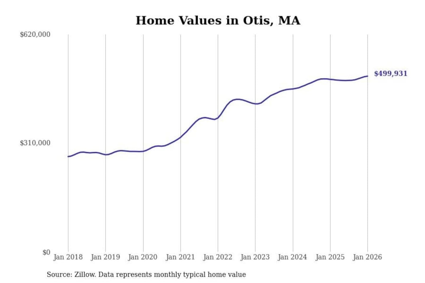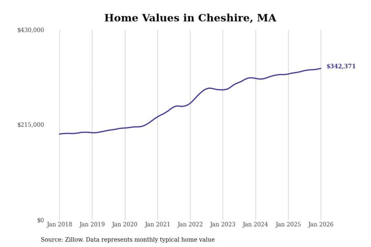 Stacker compiled a list of cities with the most expensive homes in the Pittsfield metro area using data from Zillow. Charts show the monthly typical home value since January 2018. All 29 cities and towns with data available were included in the list.