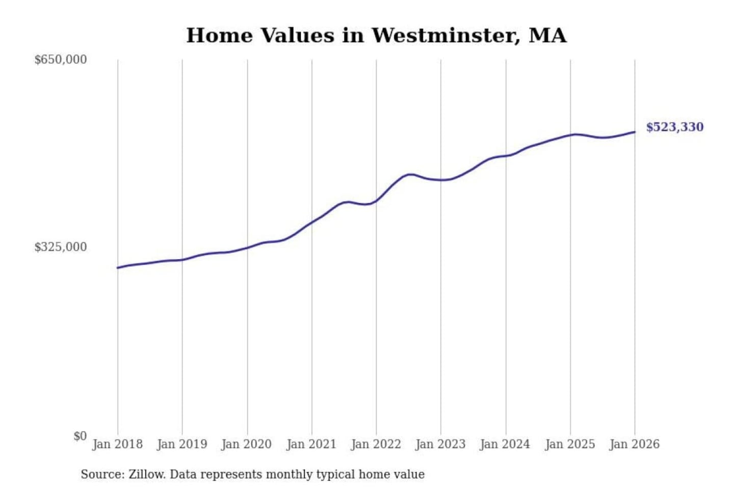 Stacker compiled a list of cities with the most expensive homes in the Worcester metro area using data from Zillow. Charts show the monthly typical home value since January 2018. Data was available for 79 cities and towns.