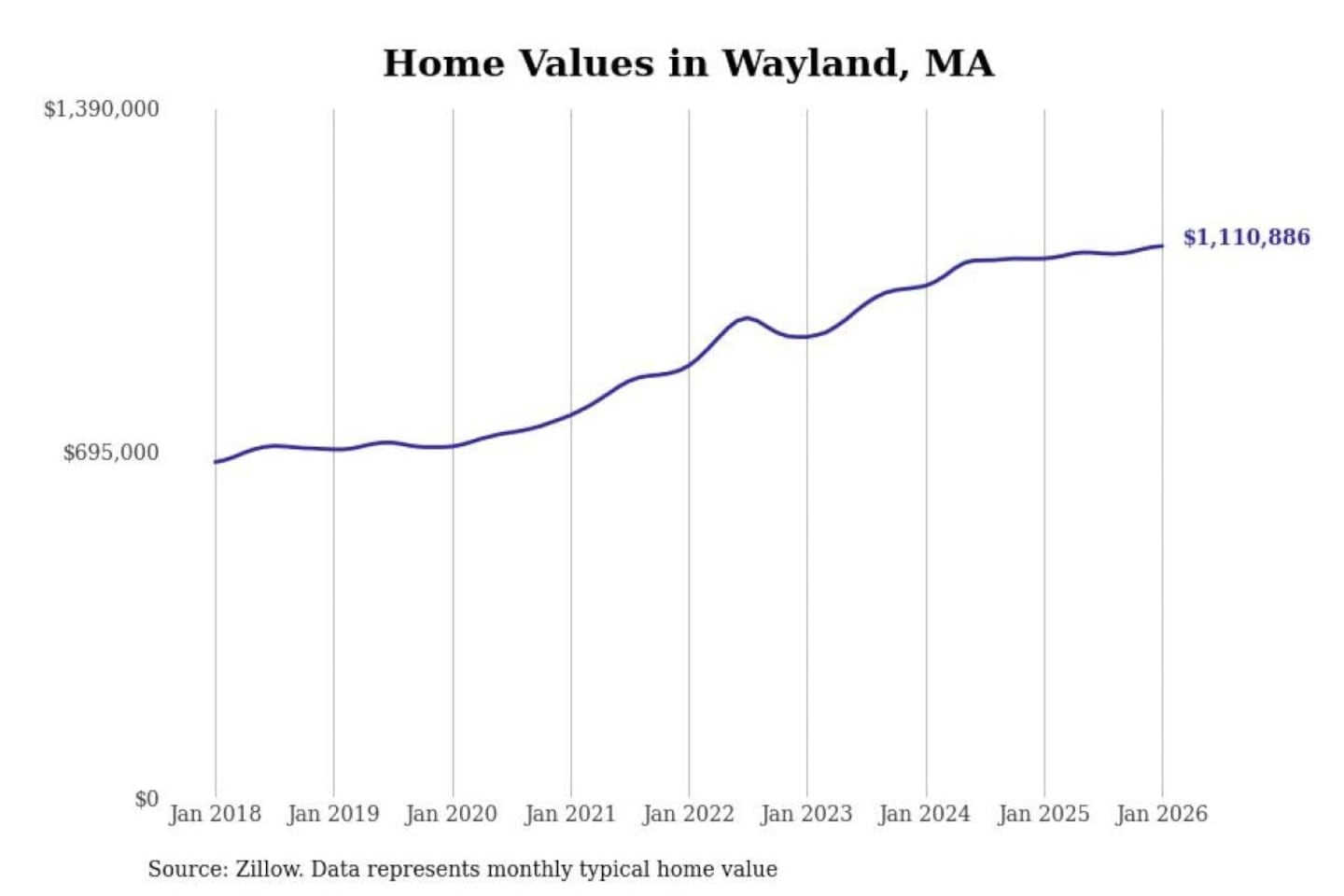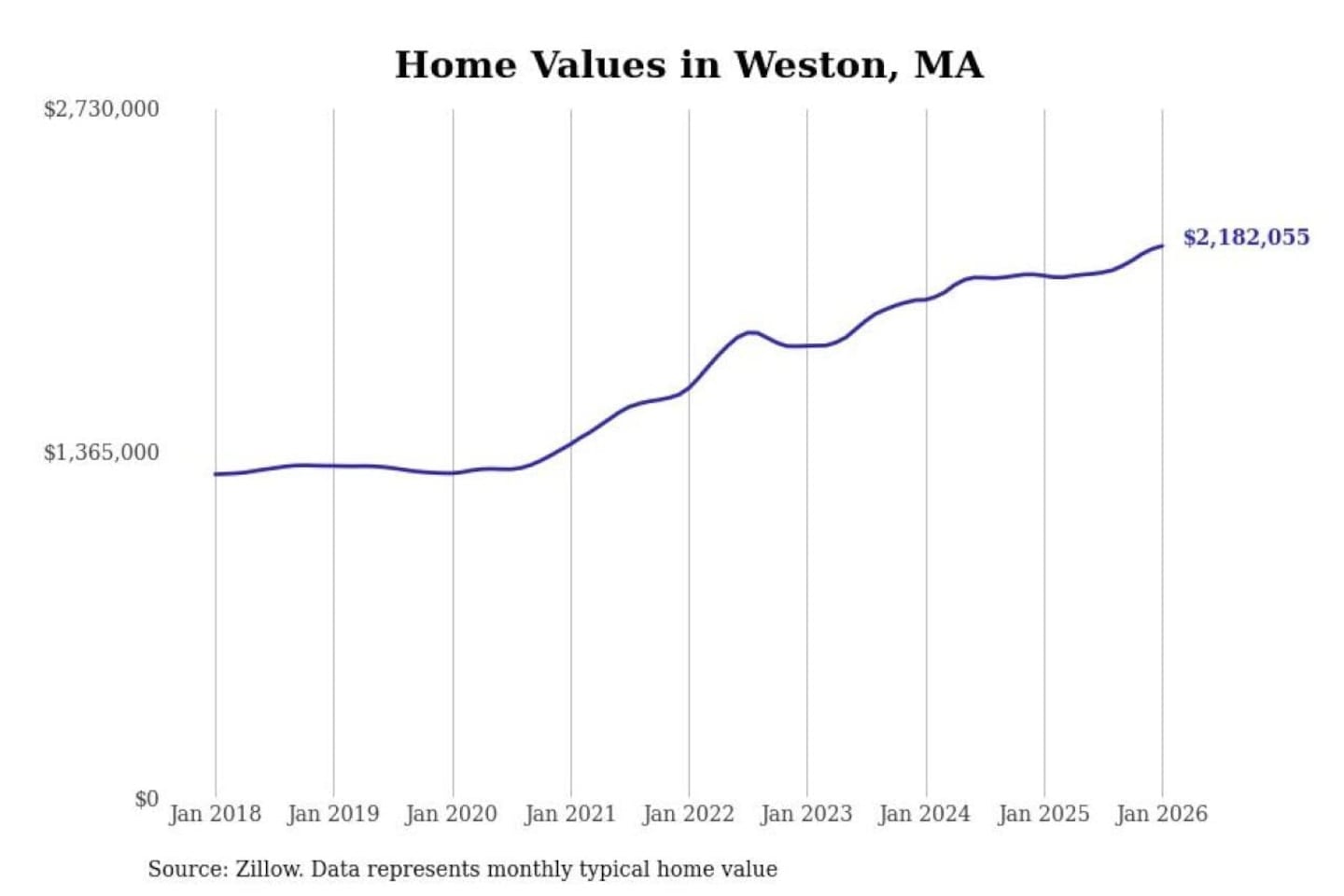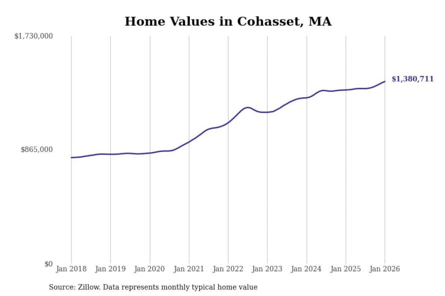 Stacker compiled a list of cities with the most expensive homes in Massachusetts using data from Zillow. Cities are ranked by the Zillow Home Values Index for all homes as of January 2026. The charts in this story were created automatically using Matplotlib.