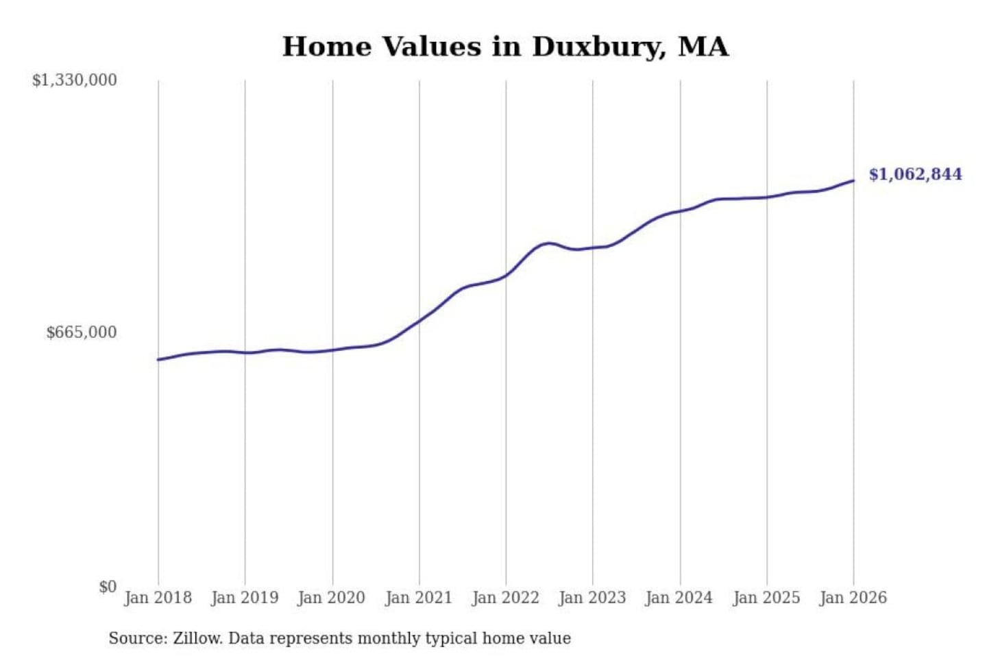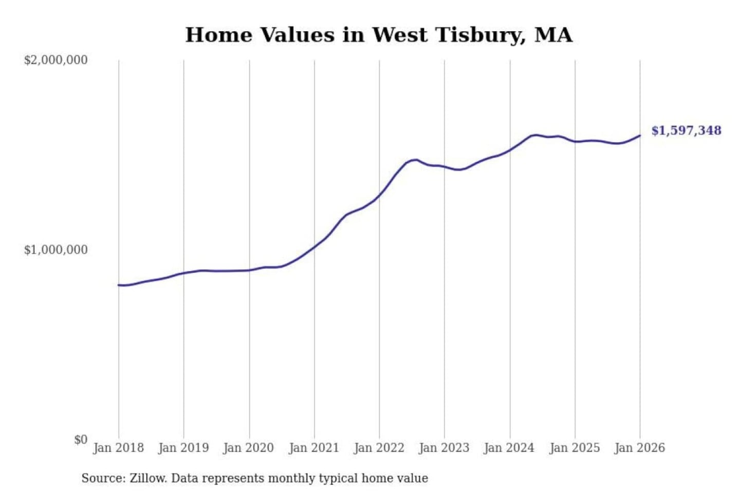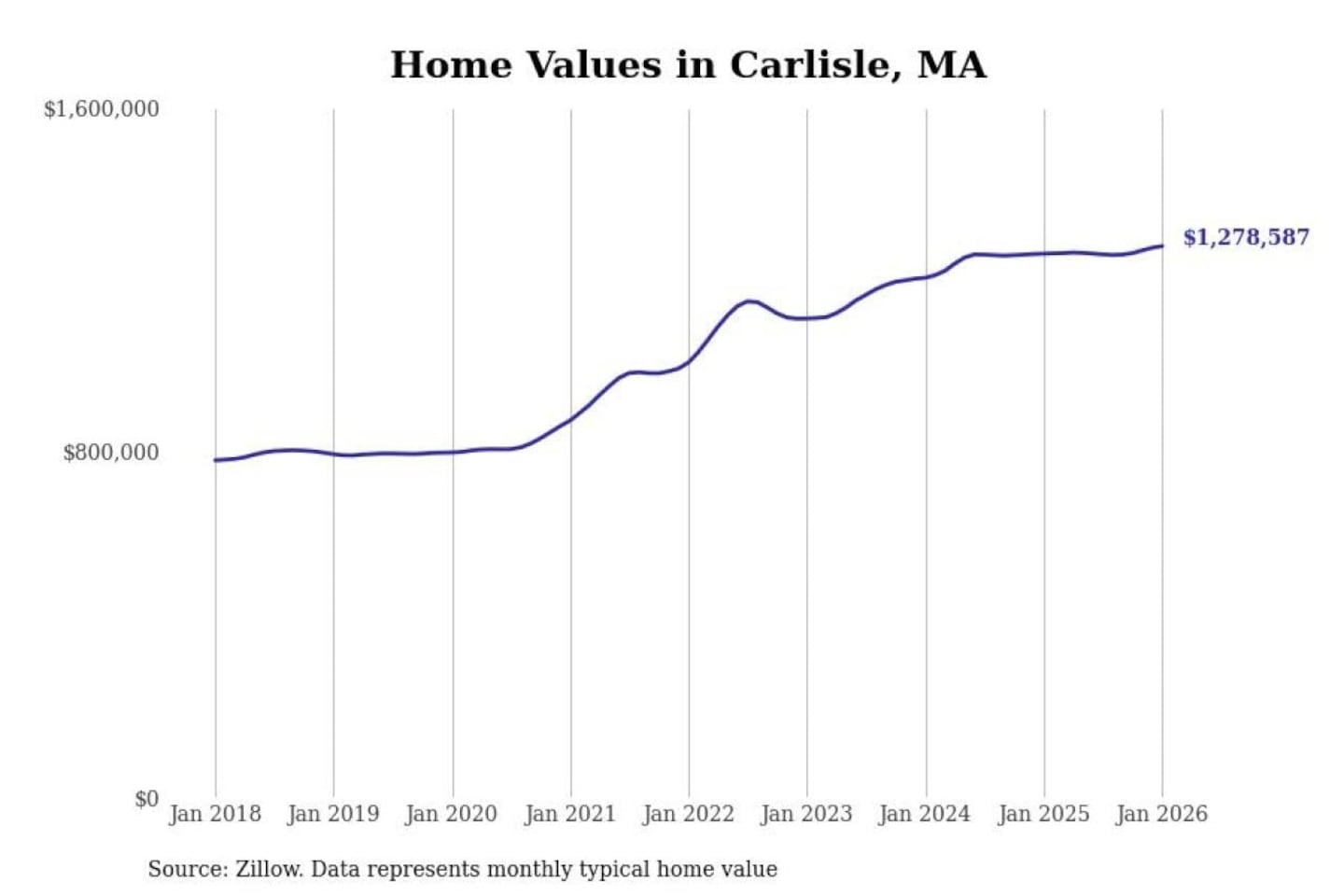 Stacker compiled a list of cities with the most expensive homes in Massachusetts using data from Zillow. Cities are ranked by the Zillow Home Values Index for all homes as of January 2026. The charts in this story were created automatically using Matplotlib.