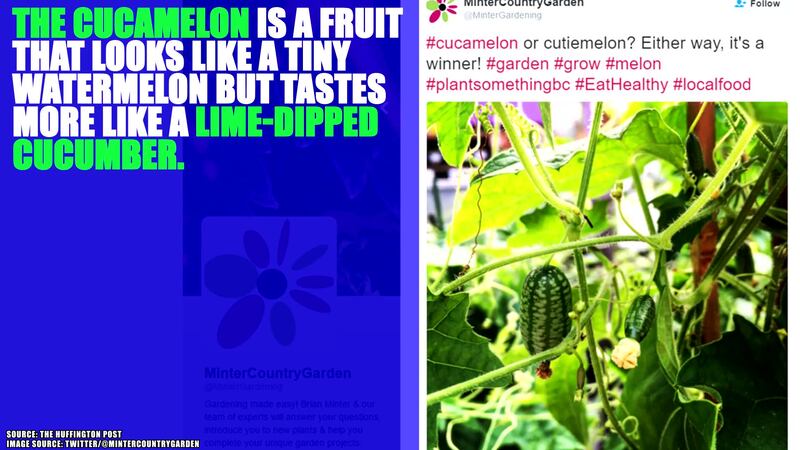 1. What is a cucamelon? According to the Huffington Post, the cucamelon is a fruit that looks like a tiny watermelon but tastes more like a lime-dipped cucumber. It's also known as Mexican sour gherkin, Mexican miniature watermelon, Mexican sour cucumber and mouse melon, BuzzFeed reports.