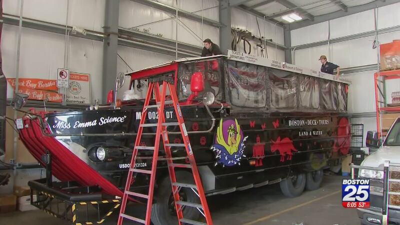 On Monday at the Duck Tours' garage in Dorchester, they were polishing the boats for the big day. Platforms will also be added before the parade so the players can be seen high above the crowds.