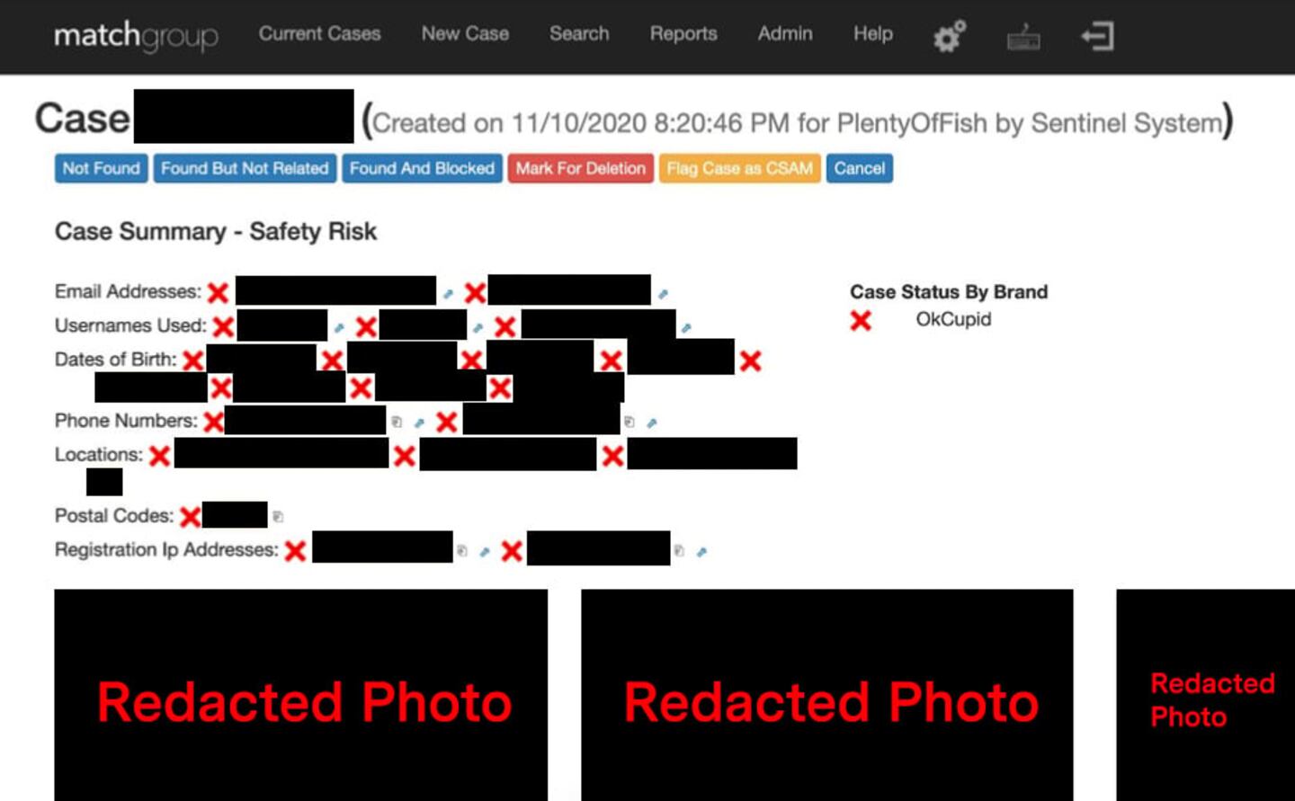 One of those was the Sentinel system, which had been up and running across Match Group's apps for at least five years before Breeden arrived. It works like this: When a user is banned for something serious—like sexual assault—a case is created in Sentinel with the phone number and email address associated with their account. In interviews, multiple current and former employees described how those reports circulate through each of Match Group's apps. The system is designed to ban anyone who uses that information. It also grabs the original profile's IP addresses, photos, and birthdate.
