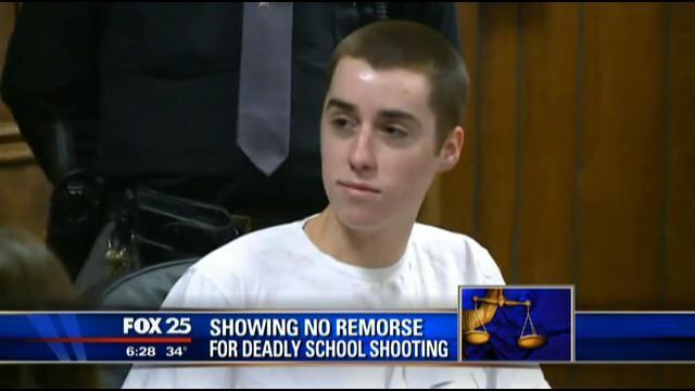 He smiled and smirked throughout today's sentencing, including when four relatives of the victims spoke. At the start of the hearing, he calmly unbuttoned his blue dress shirt to reveal the T-shirt reading "killer," which a prosecutor noted was similar to one he wore during the shooting.