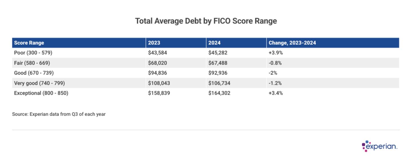 Average total debt balances among U.S. consumers were largely unchanged in 2024, as consumers, on average, saw their average debt loads remain roughly the same as a year ago.