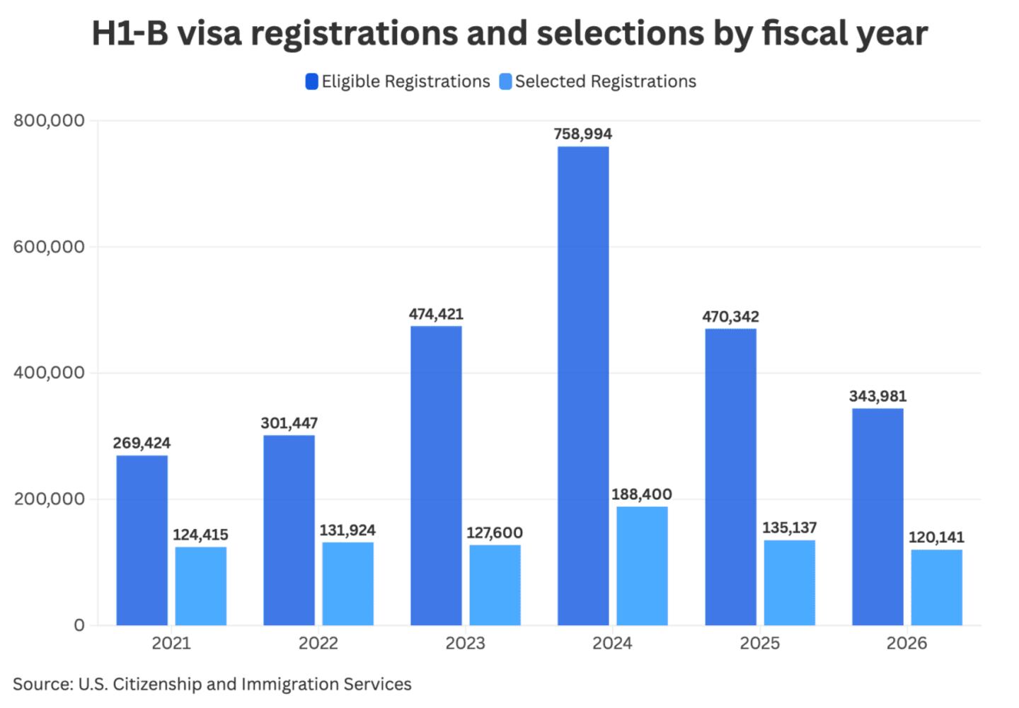 In 2025, more than 400,000 foreign professionals submitted their names for a chance at an H-1B visa, but only about 114,000 were selected.That 25.6% success rate is still higher than 2024's even more competitive odds at 24.8%. For skilled workers hoping to live and work in the United States, the H-1B process has come to feel less like a job application and more like a game of chance.
