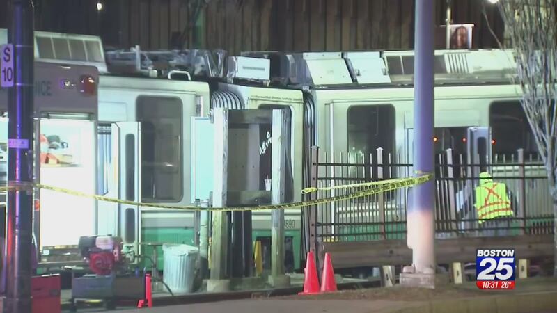 A Green Line train derailed near Blandford Street on Saturday morning, according to the MBTA.