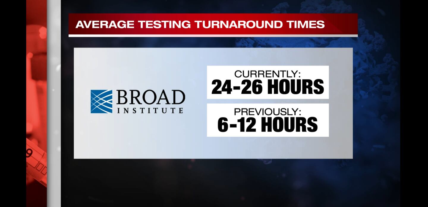 “Some of our staff are out because they or a close contact have contracted COVID, and although we’re able to compensate, it means our average turnaround times are now in the 24-26 hour range,” Broad Institute Communications Director David Cameron wrote in an email to Boston 25 News. The Broad Institute handles much of the PCR testing for the state, including pool testing for local schools and universities.