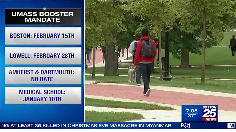 BOSTON — As COVID cases continue to climb, more and more schools are requiring students and staff to get their booster shots. That list now includes thousands of students and staff at UMass campuses across the state.