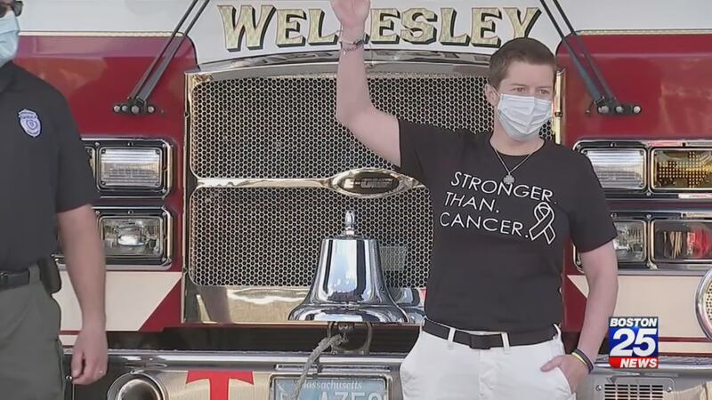 WELLESLEY, Mass. — A Wellesley firefighter and cancer survivor celebrated her final oral chemotherapy treatment Thursday with a surprise parade at her fire station.