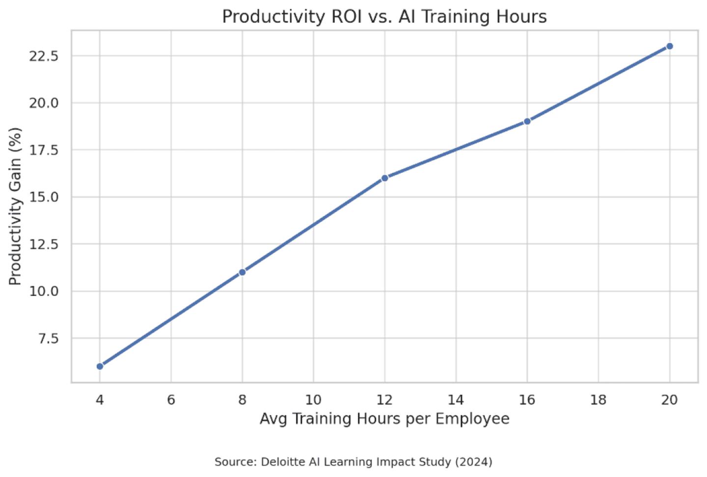 Even small investments in AI training lead to real productivity gains. According to Upwork, employees skilled in using AI tools experience up to a 40% boost in productivity.